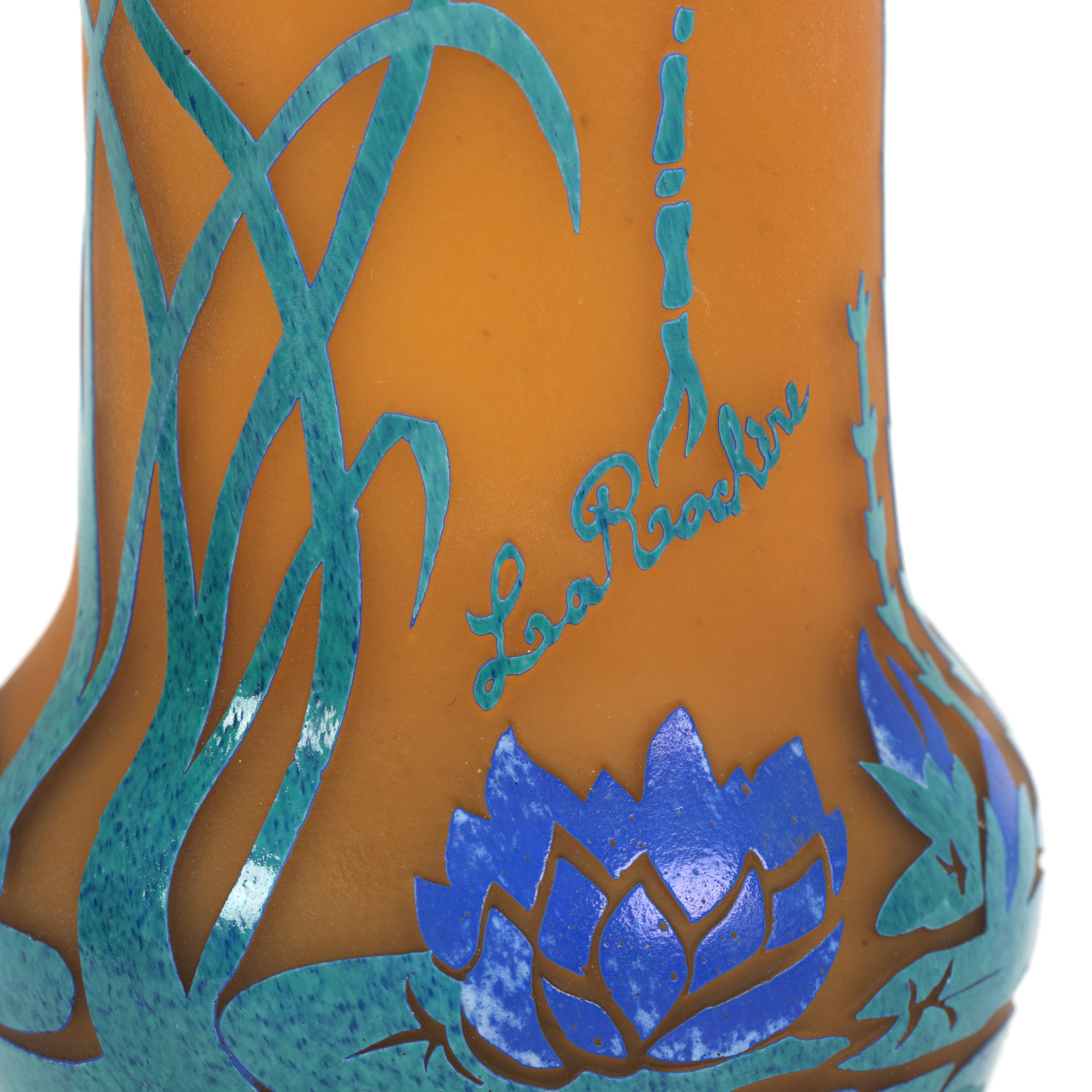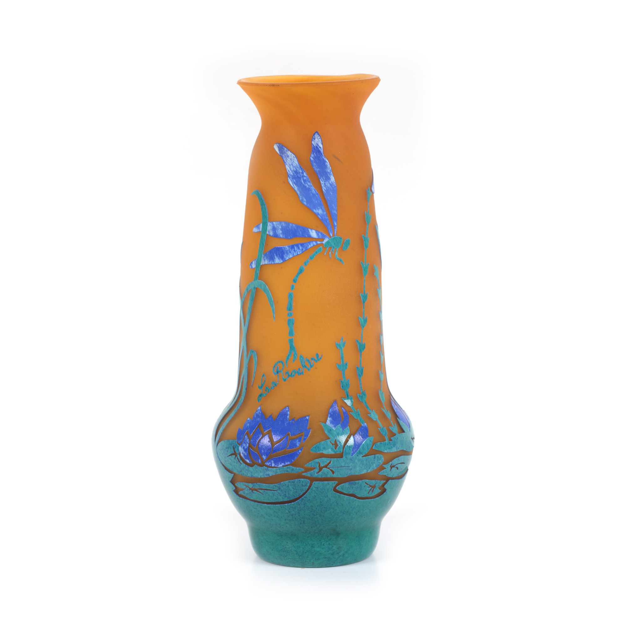 31. Vas La Rochère din sticlă cameo, în manieră Art Nouveau, decorat cu peisaj lacustru [Cca. 1950-1960]