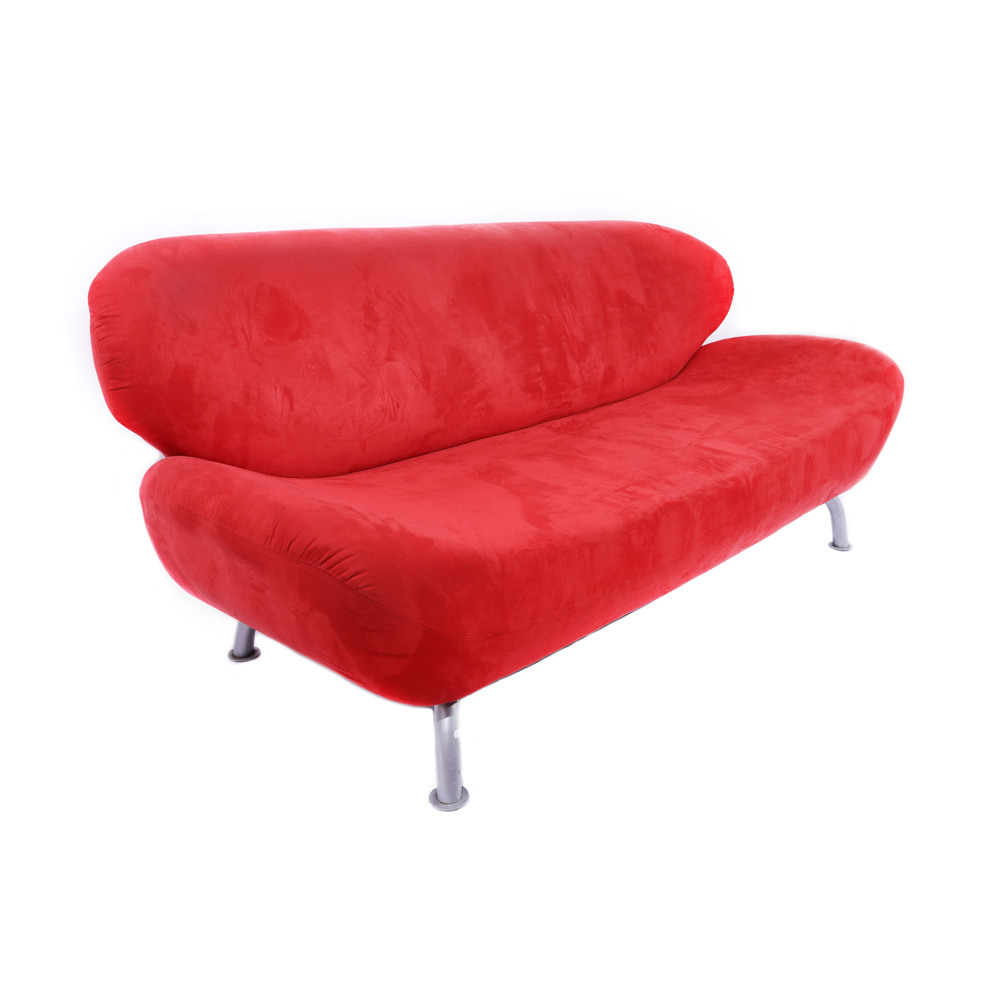 25. Canapea Mid-Century Modern, cu tapițerie din velur roșu [Cca. 1950-1960]