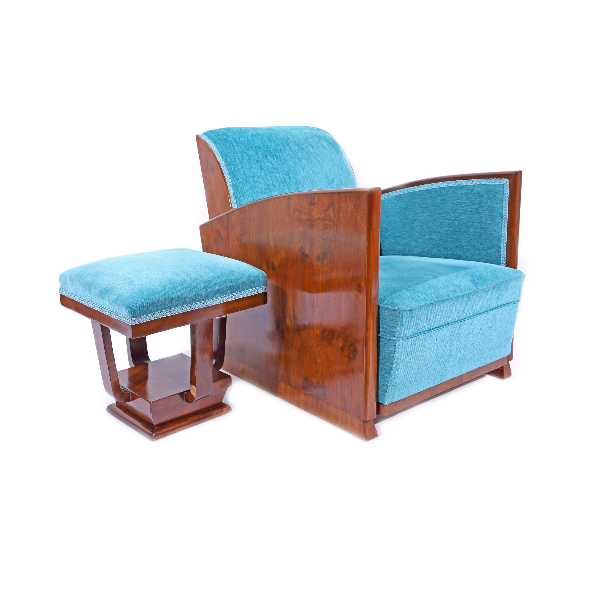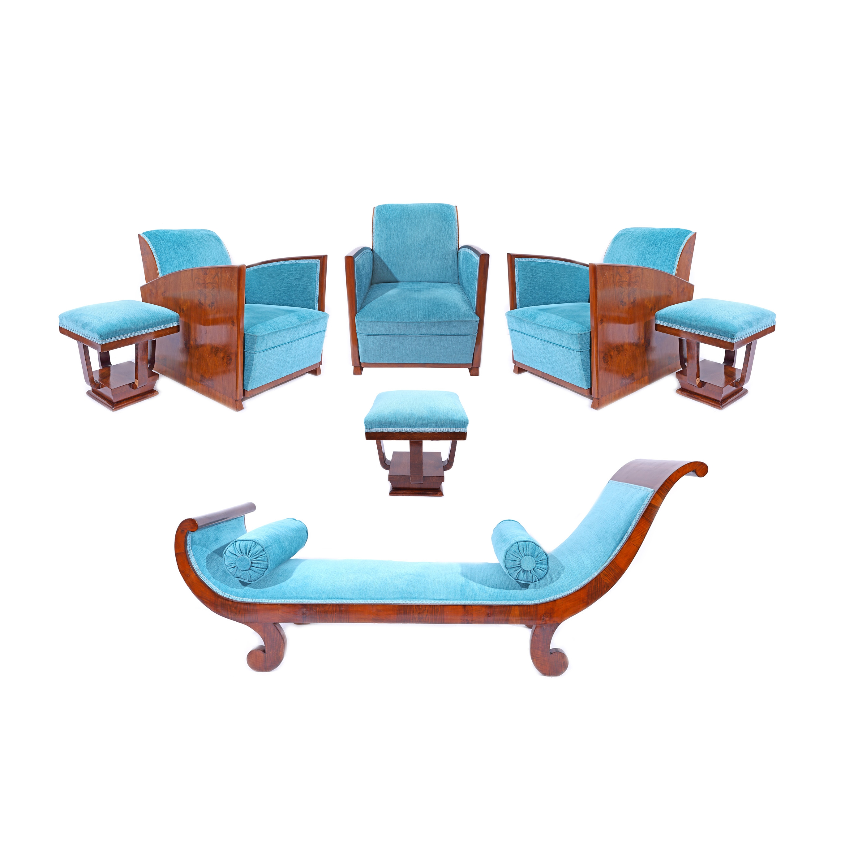 53. Garnitură Art Deco, formată din récamier, trei fotolii cu taburet și masă, cca. 1920