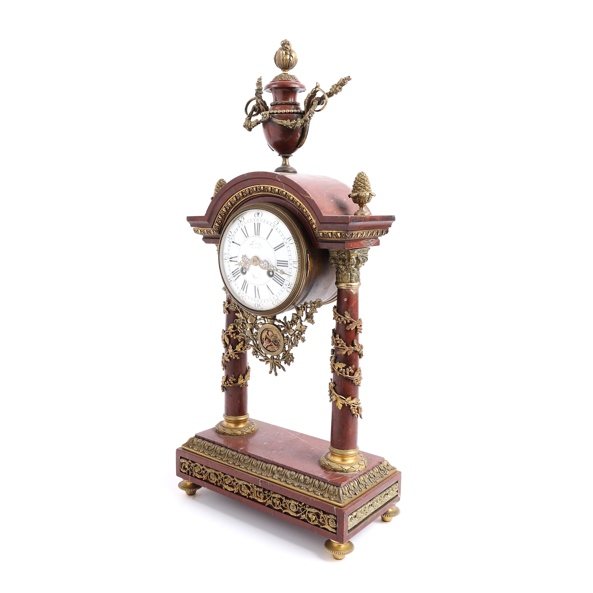 marmură tăiată, șlefuită; bronz, turnat, cizelat; email