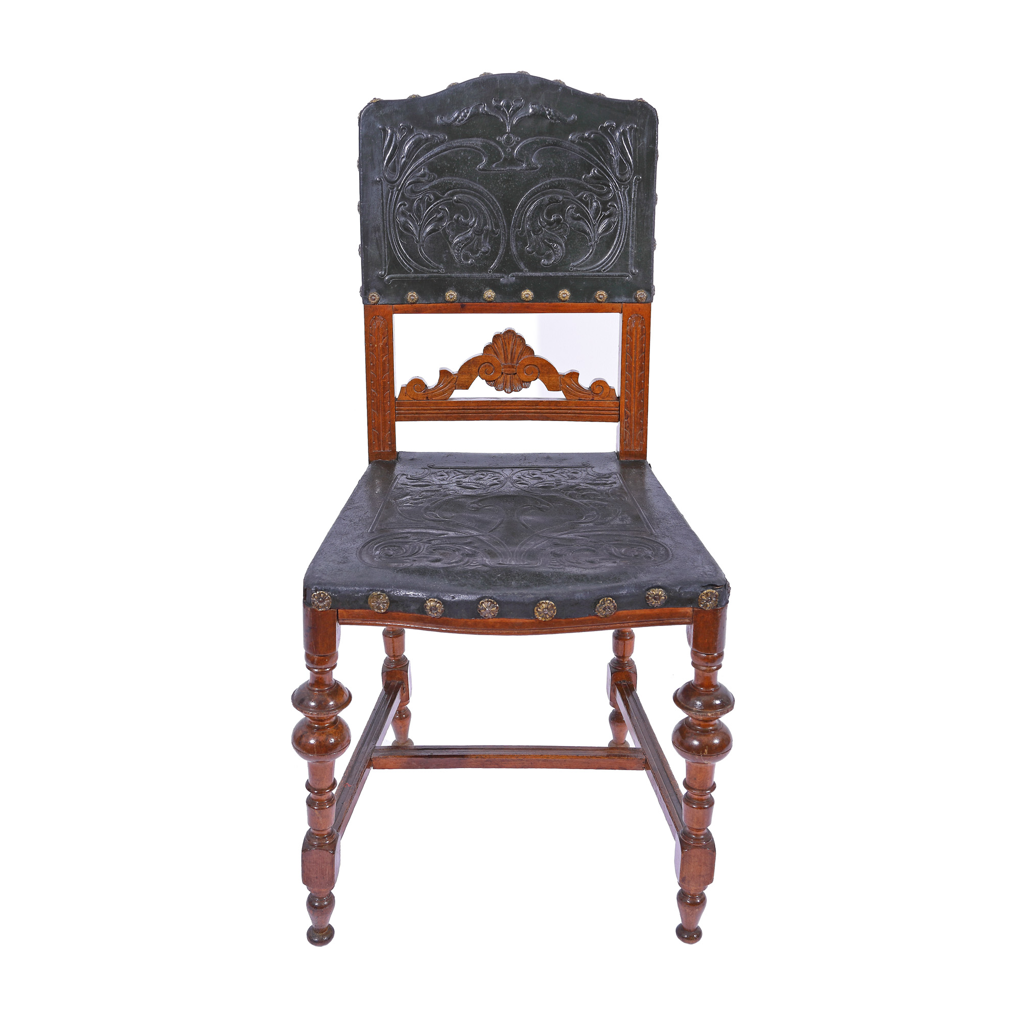 22. Pereche de scaune Art Nouveau, cu influențe Gründerzeit, decorată cu iriși stilizați, cca. 1890-1900, provine din colecția Moise Weinberg