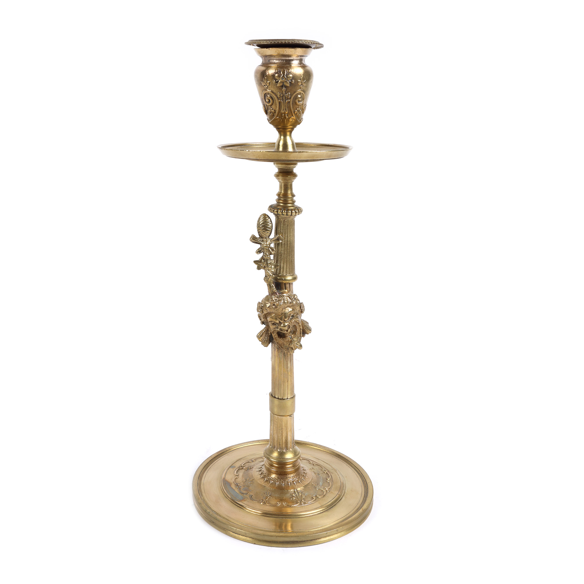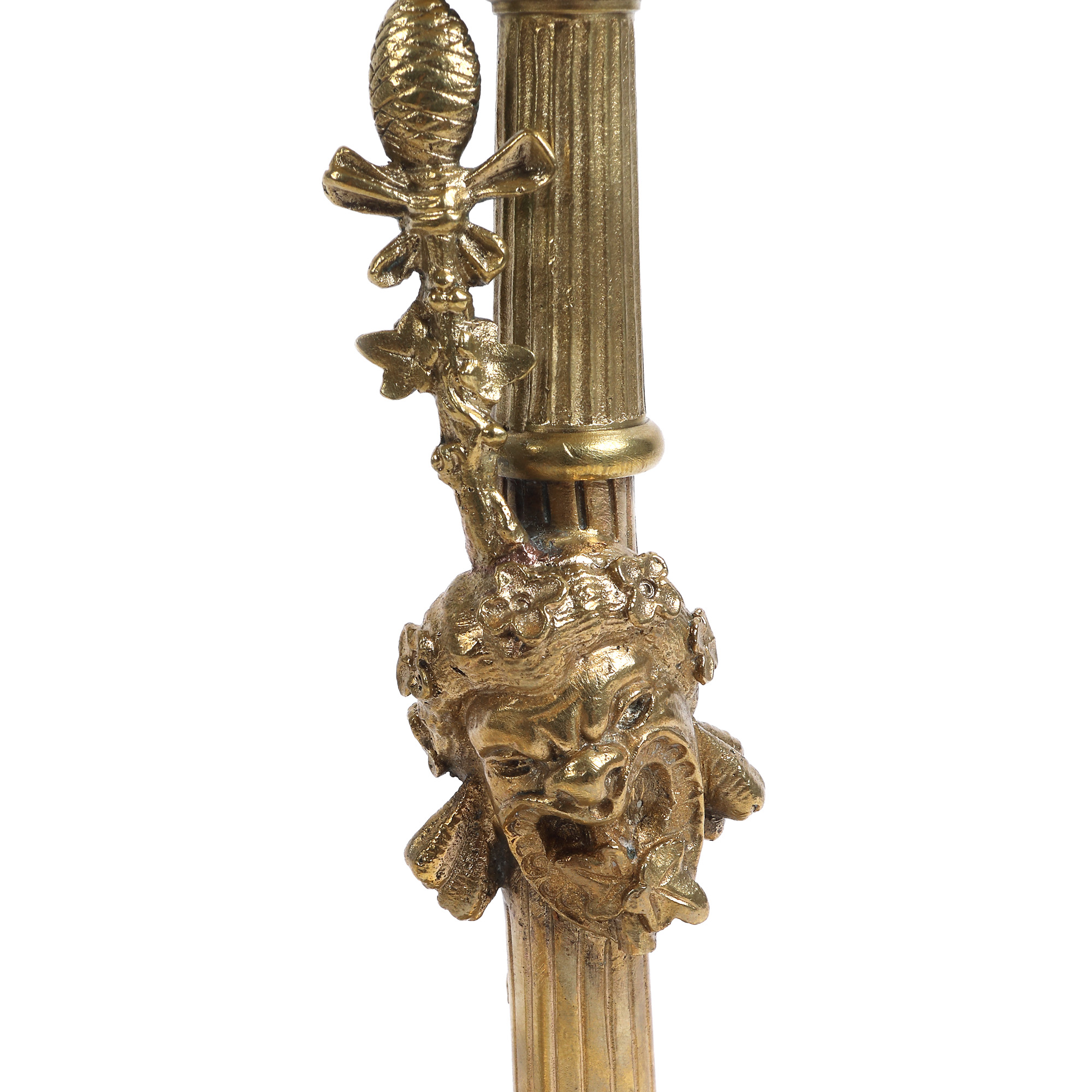 21. Pereche de sfeșnice Susse Frères din bronz aurit, cu decor Neo-Clasic efigii inspirate din personajele din ”Commedia dell'arte”, sec. XIX