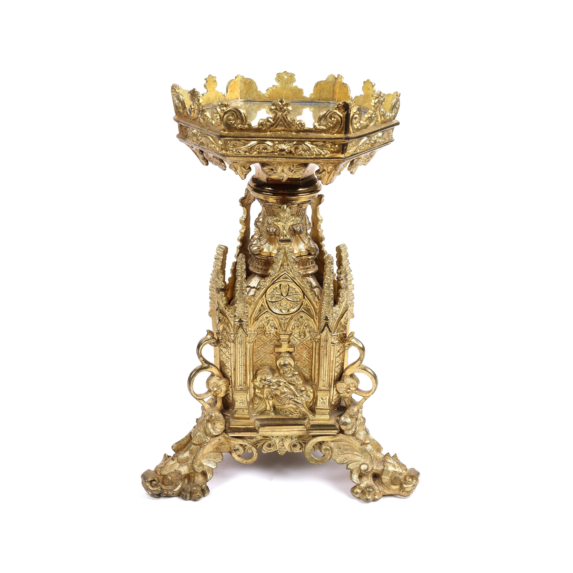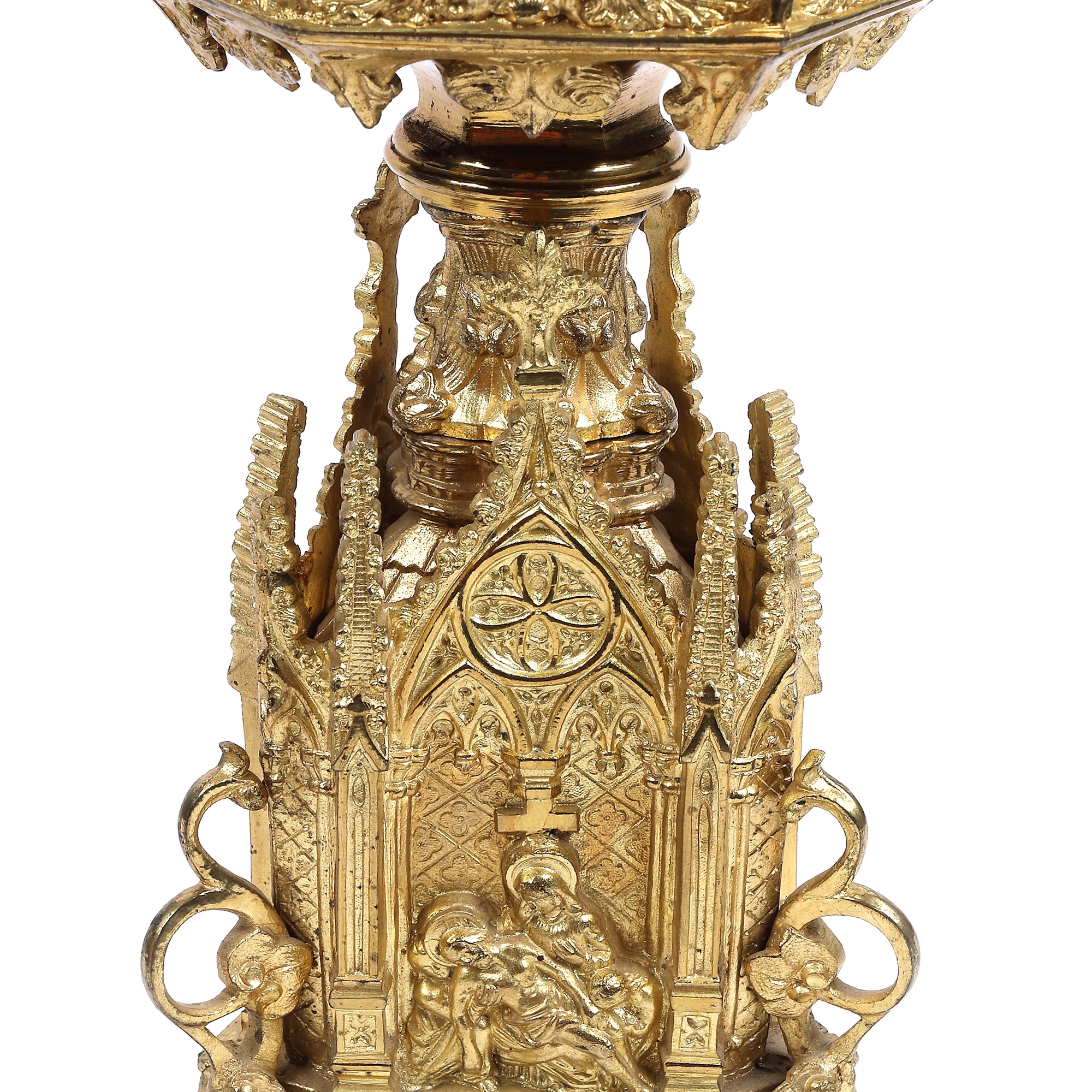 30. Pereche de suporturi Gothic Revival din bronz doré, decorată cu scenă biblică, sec. XIX