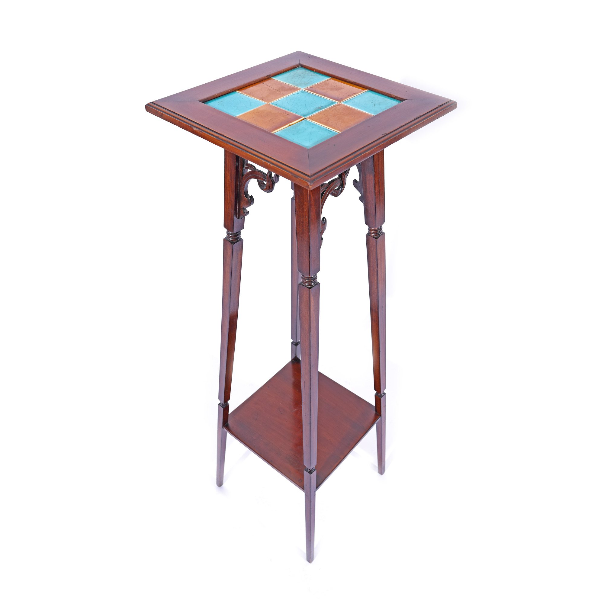 1. Piedestal Art Nouveau din lemn de mahon și blat din ceramică, cca. 1900