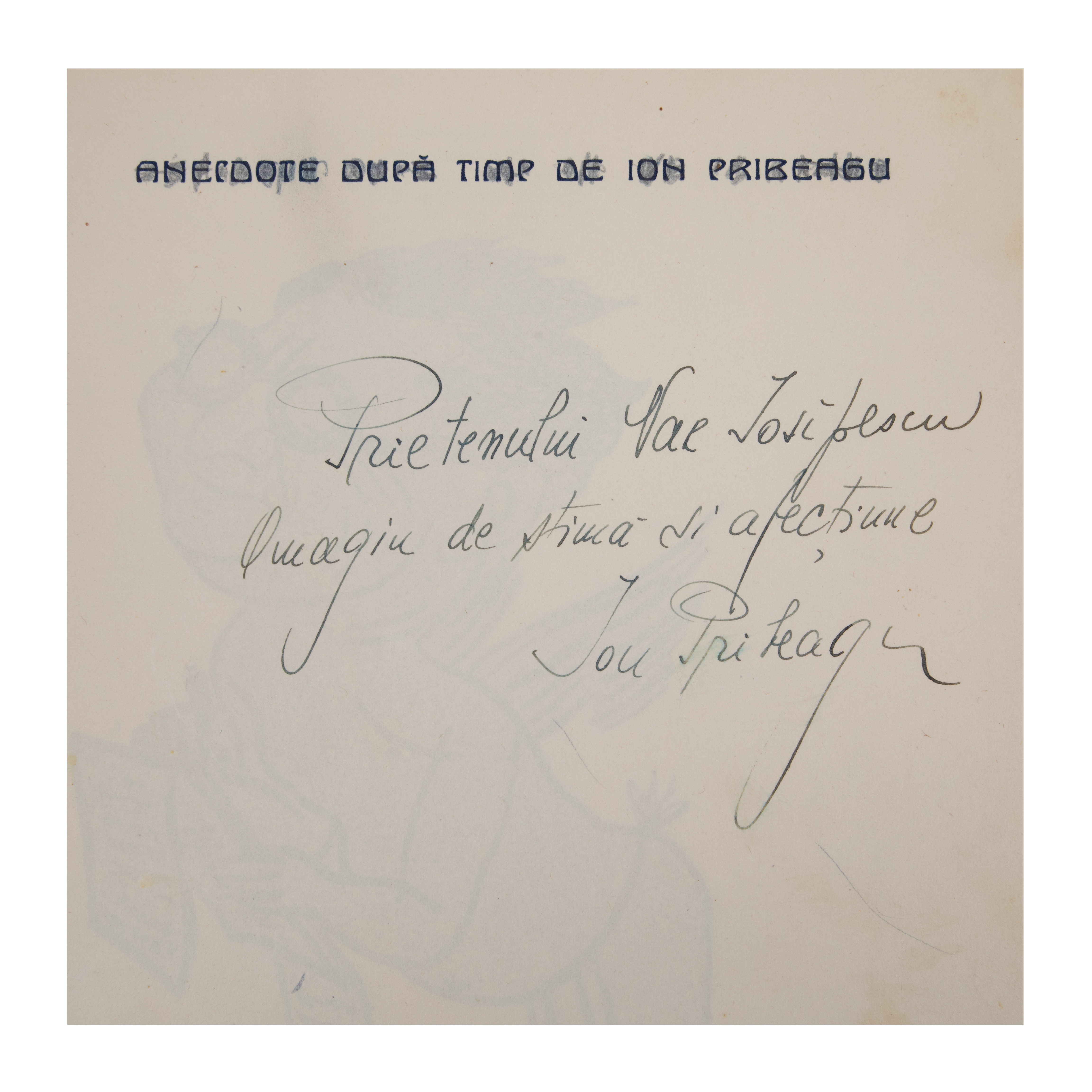 23. ”Anecdote după timp”, de Ion Pribeagu, București, 1939, cu dedicația și semnătura olografă a autorului