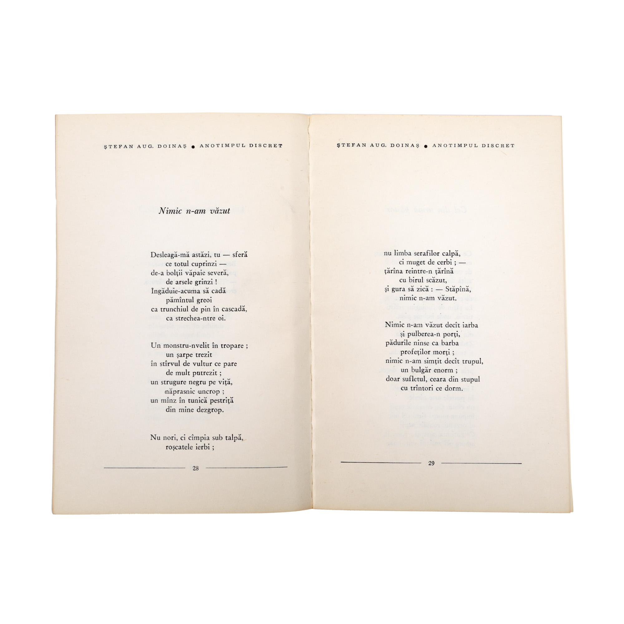 5. "Anotimpul Discret", de Ștefan Augustin Doinaș, București, 1975, cu dedicația olografă a autorului