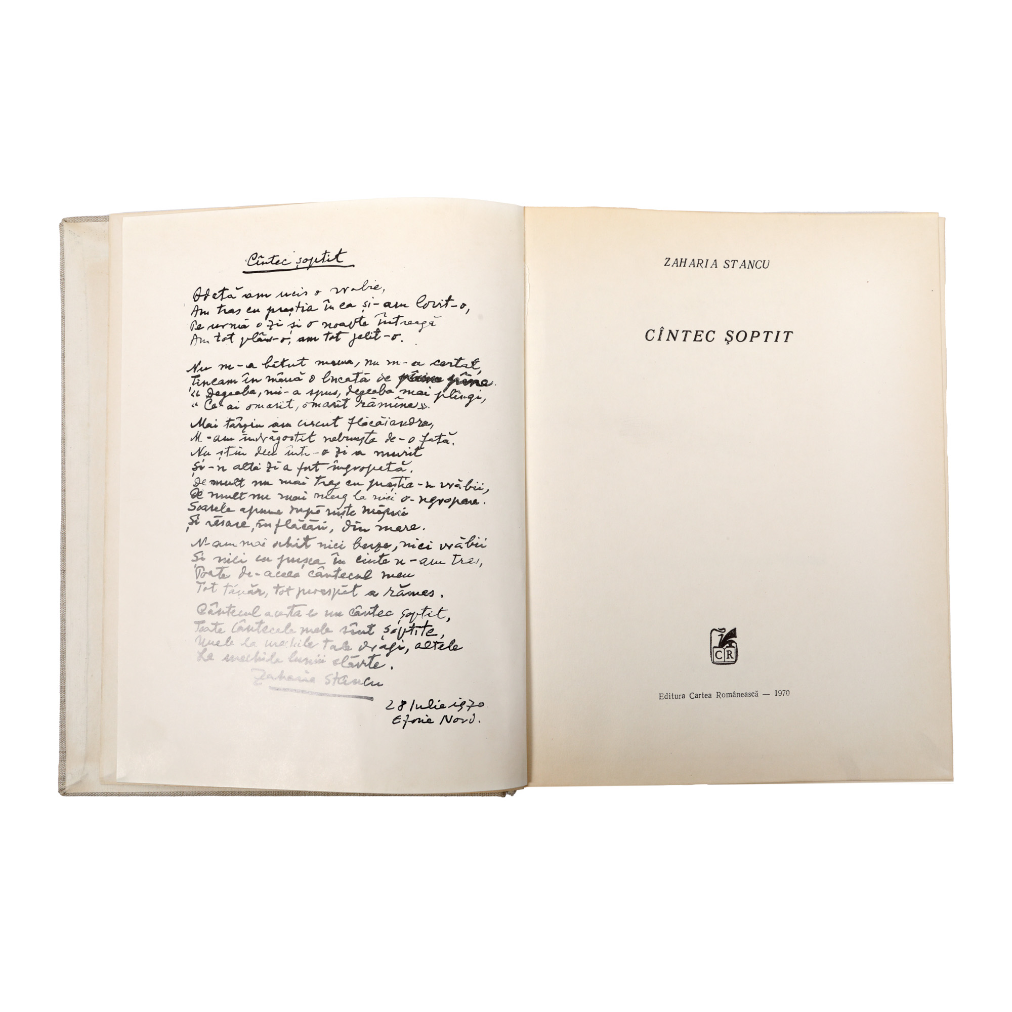 16. "Cântec șoptit", de Zaharia Stancu, București, 1970, cu dedicația autorului