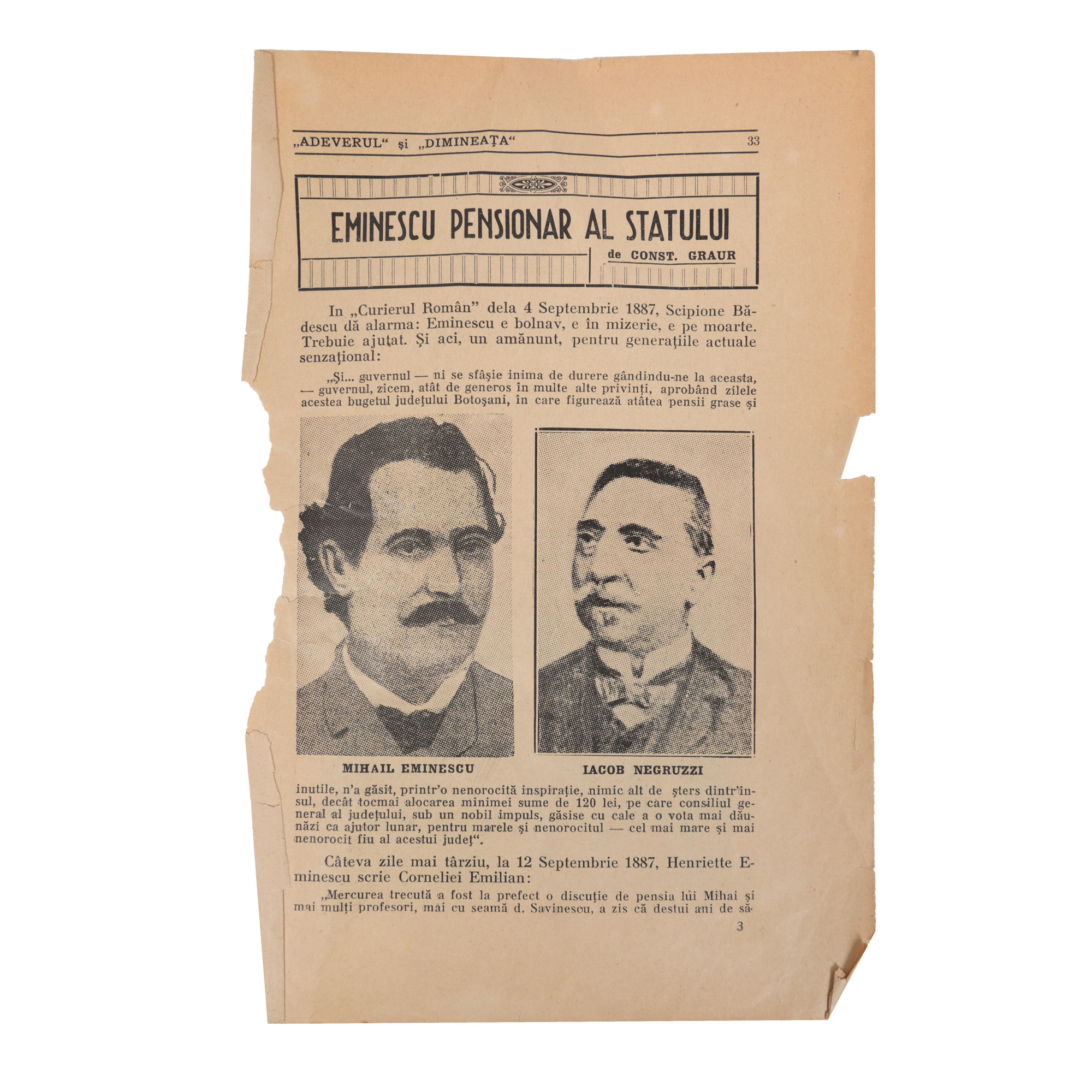 30. Lot format din mai multe publicații despre Eminescu, provine din colecția criticului literar Șerban Cioculescu