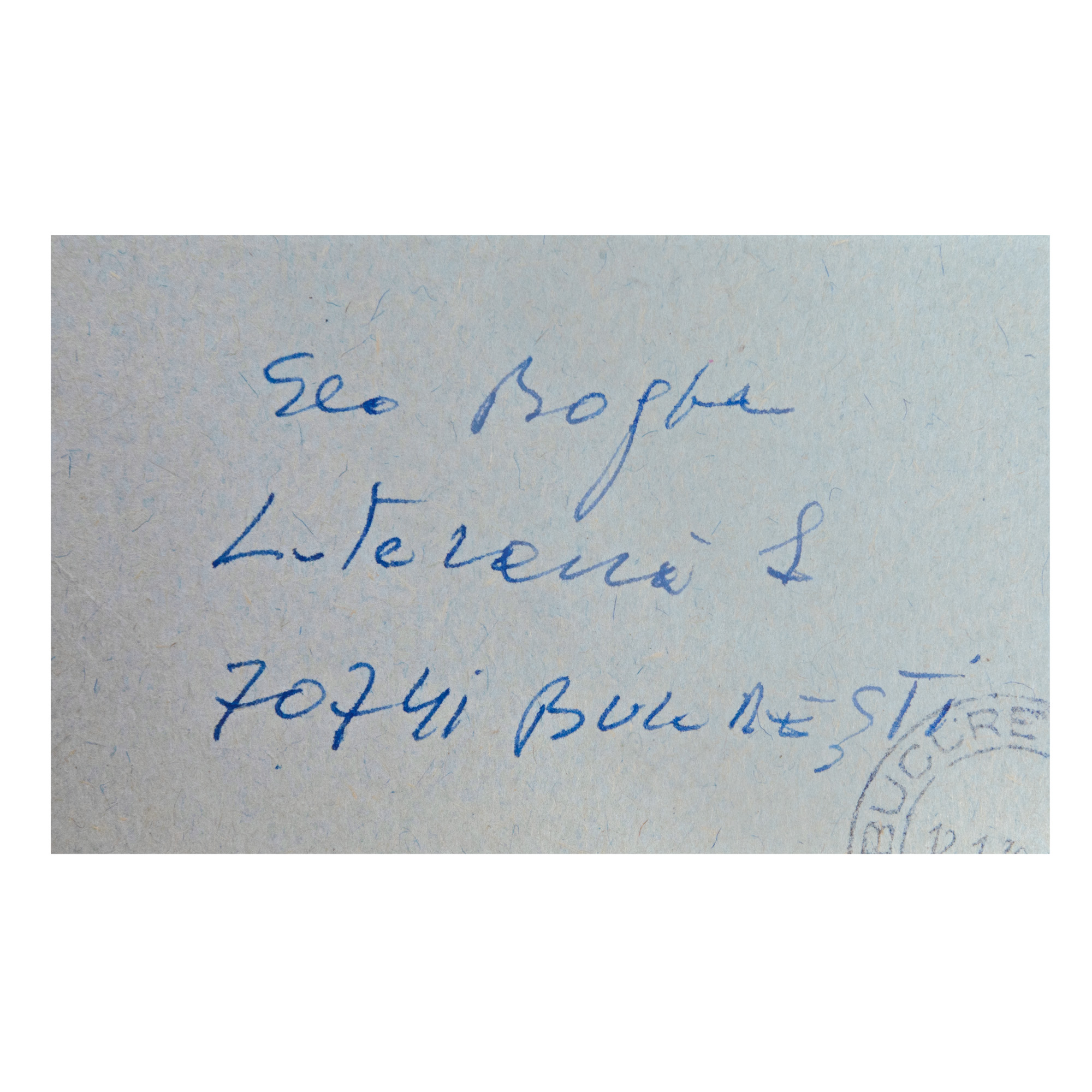 În interiorul exemplarului se păstrează un fragment dintr-un plic de corespondență cu propria adresă poștală redactată olograf de Geo Bogza, păstrată de criticul literar.