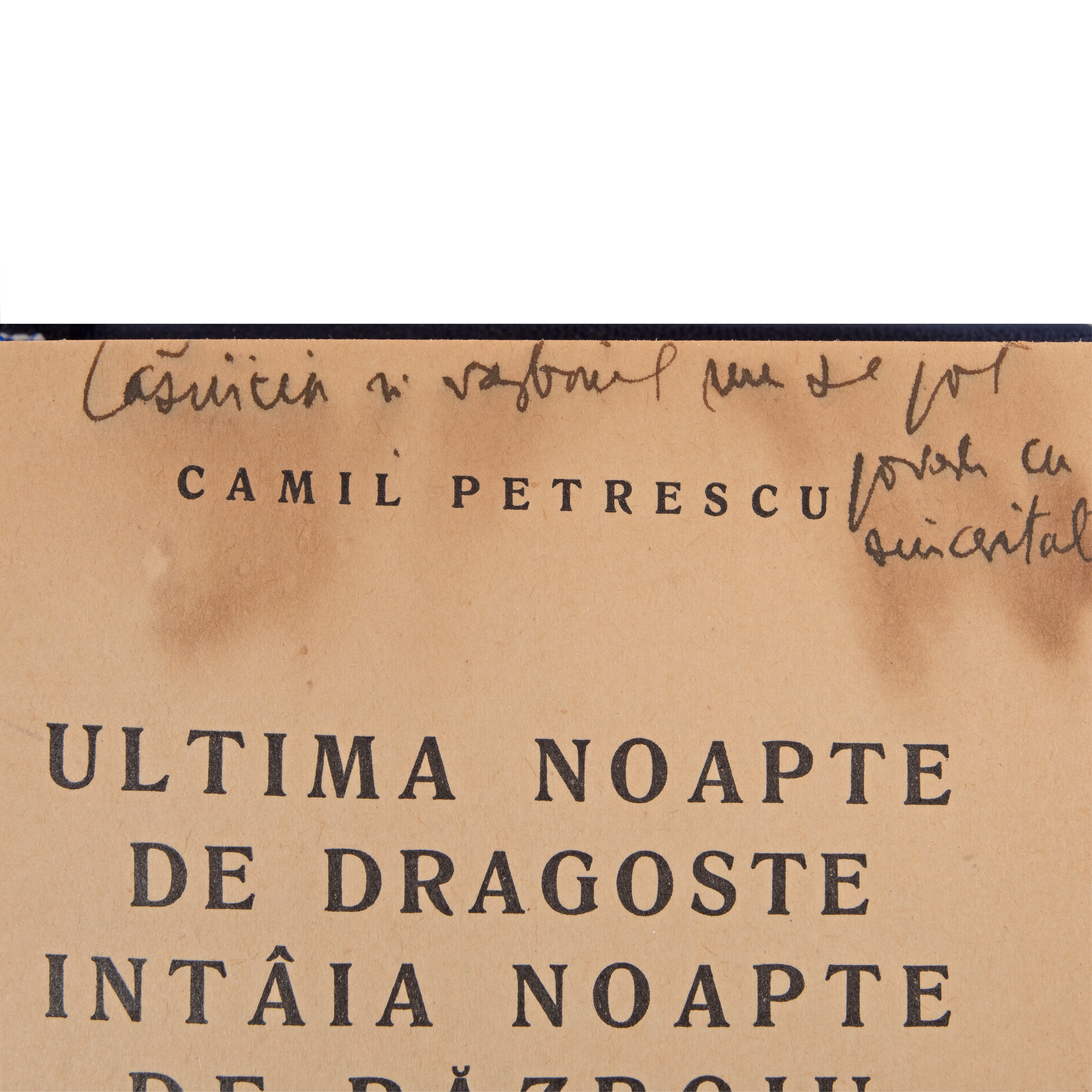 3. "Ultima noapte de dragoste, întâia noapte de război", 2 vol. colegate, de Camil Petrescu, București, 1931, cu dedicația olografă a autorului