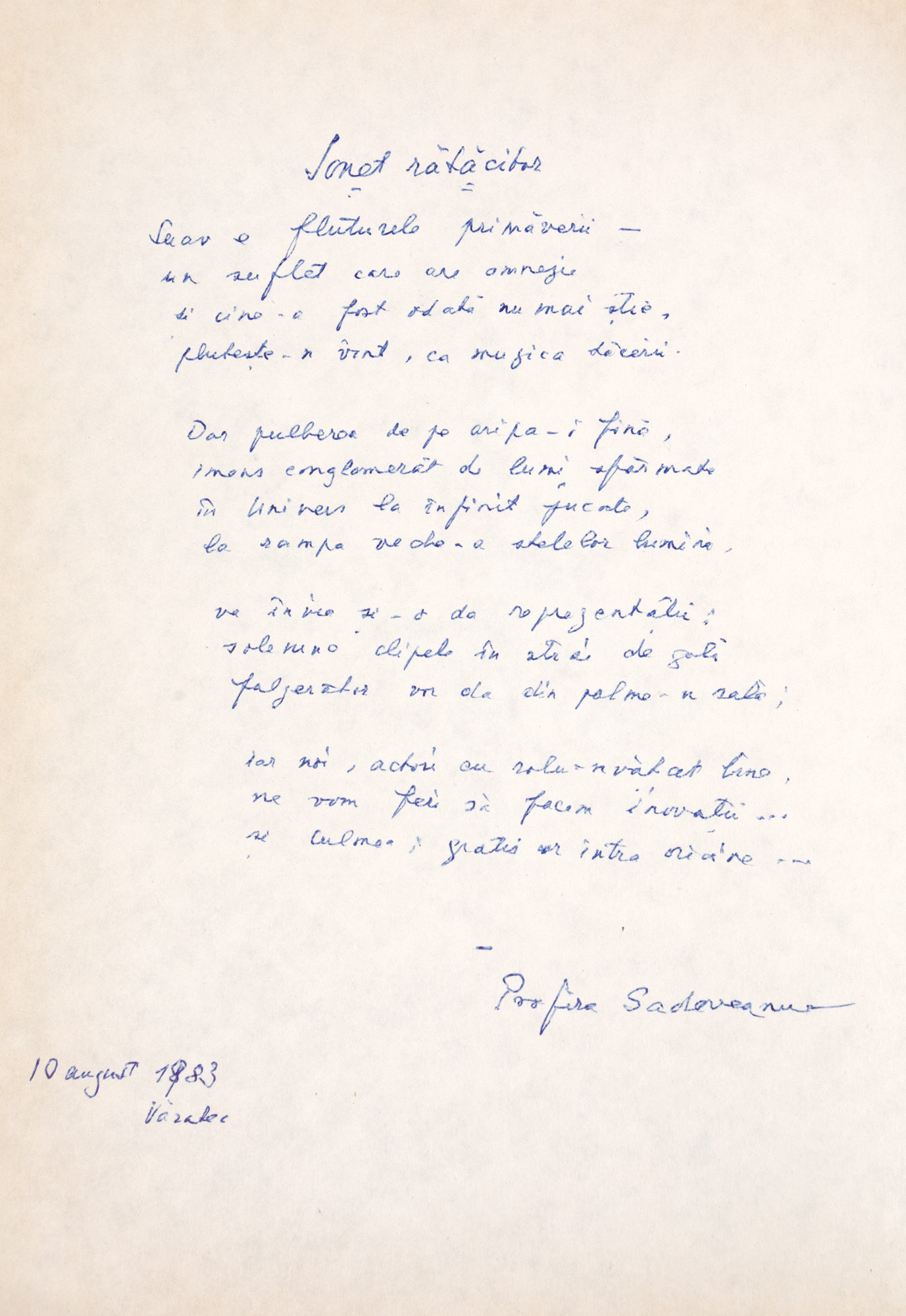 29. ”Umilinți”, de Profira Sadoveanu, București, 1944, cu 10 poezii manuscrise, numeroase decupaje din ziare, dedicația și semnătura olografă a autoarei