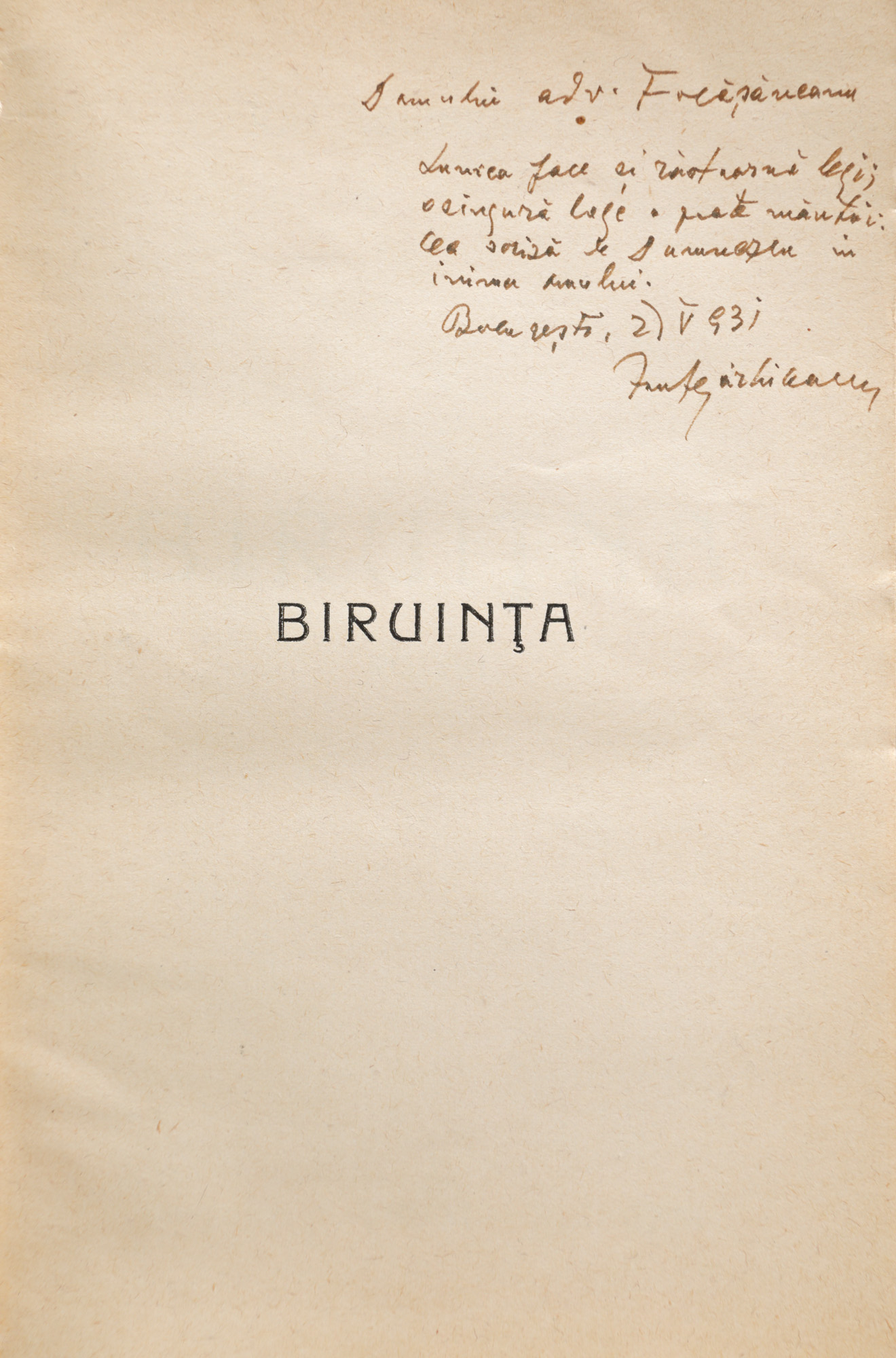 32. ”Biruința”, de Ion Agârbiceanu, ediție princeps, București, 1930, cu dedicația și semnătura olografă a autorului