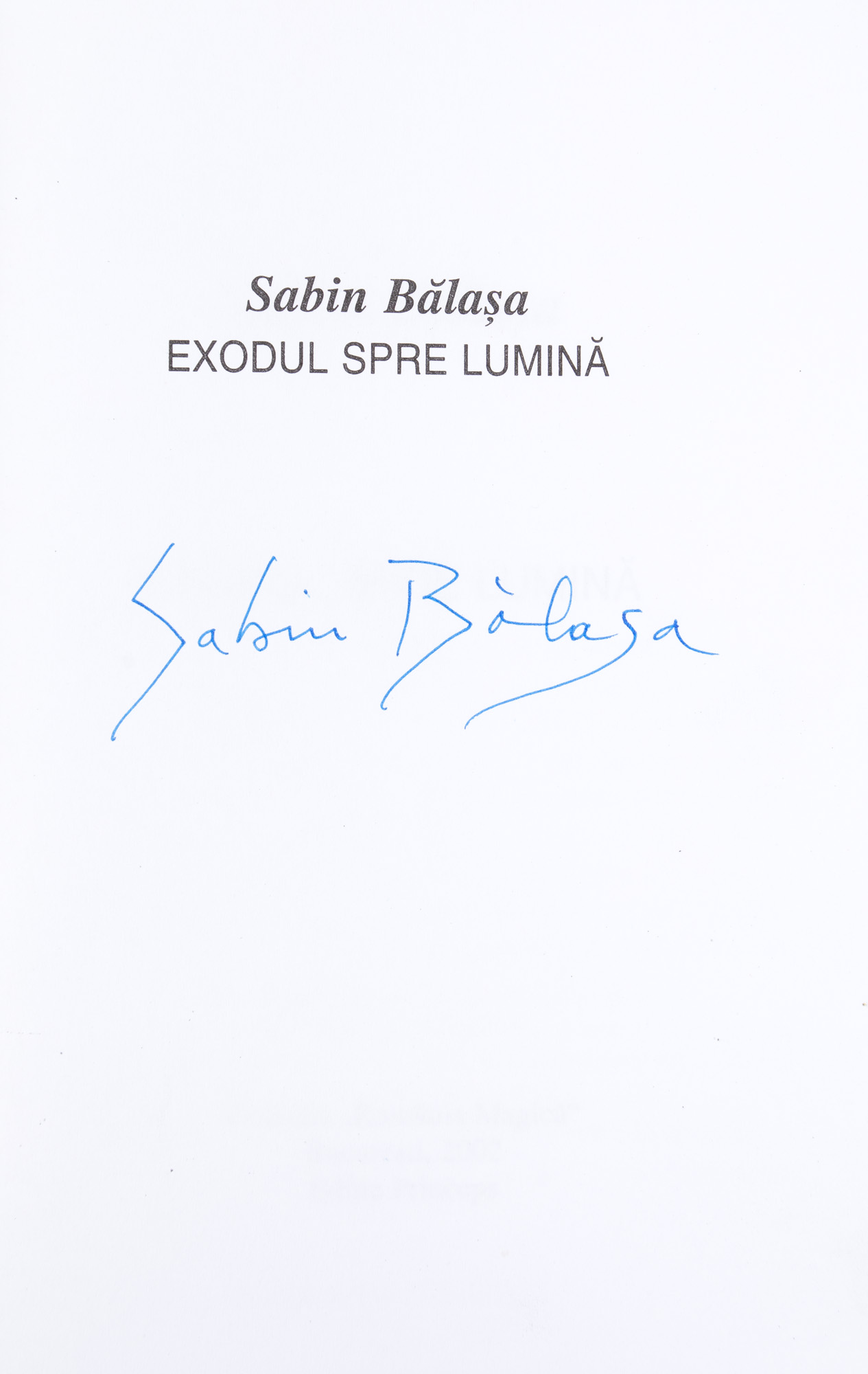 34. ”Exodul spre Lumină”, de Sabin Bălașa, ediție princeps, București, 2002, cu semnătura olografă a autorului