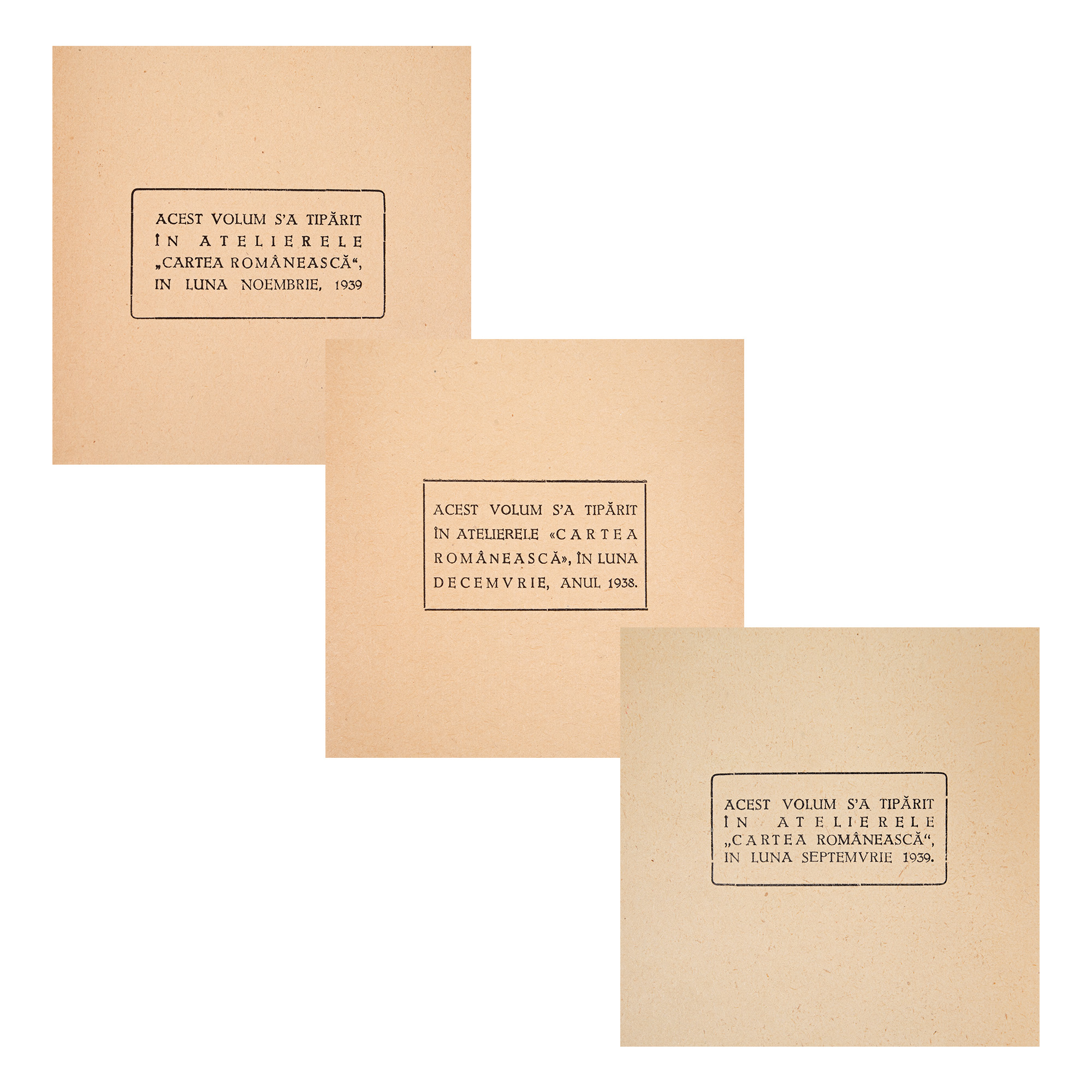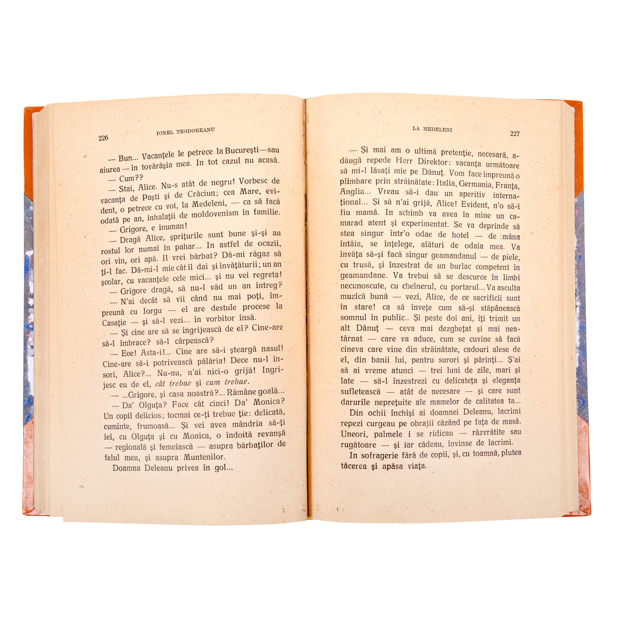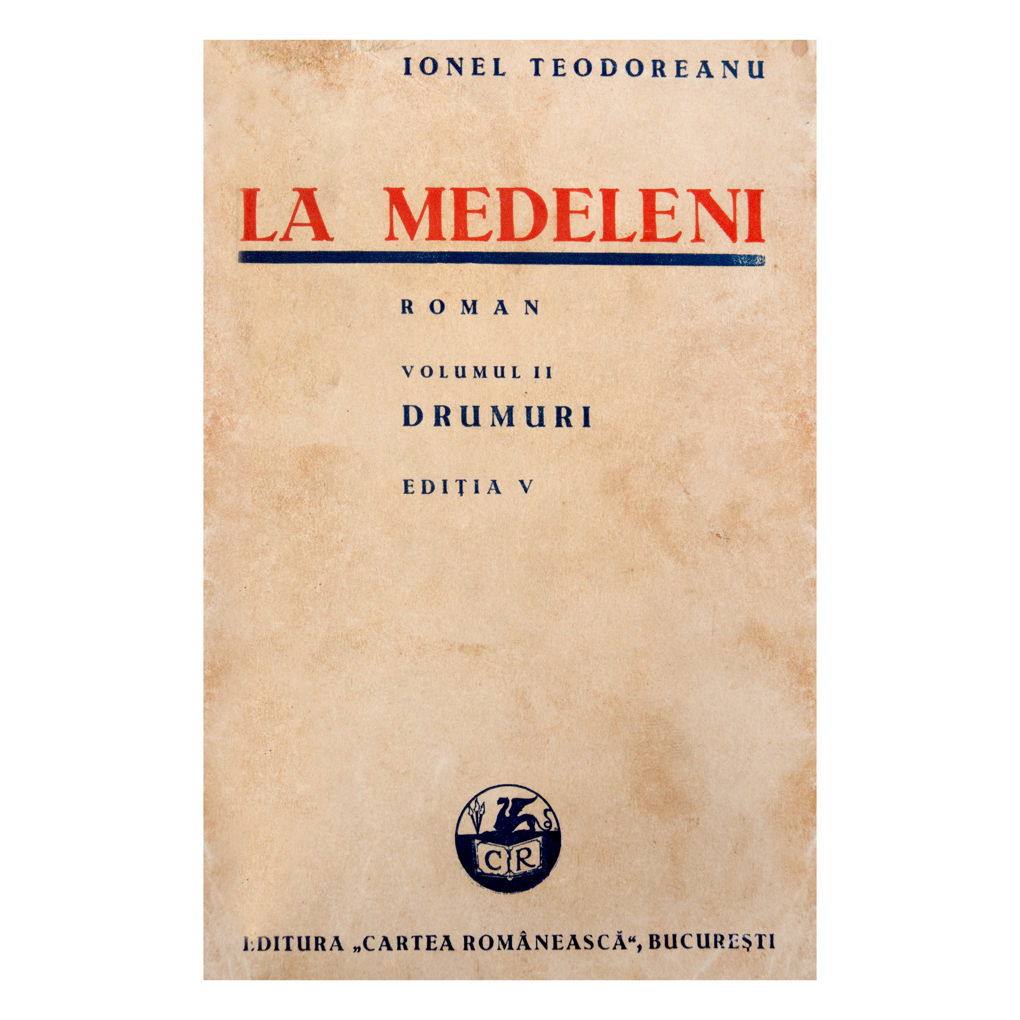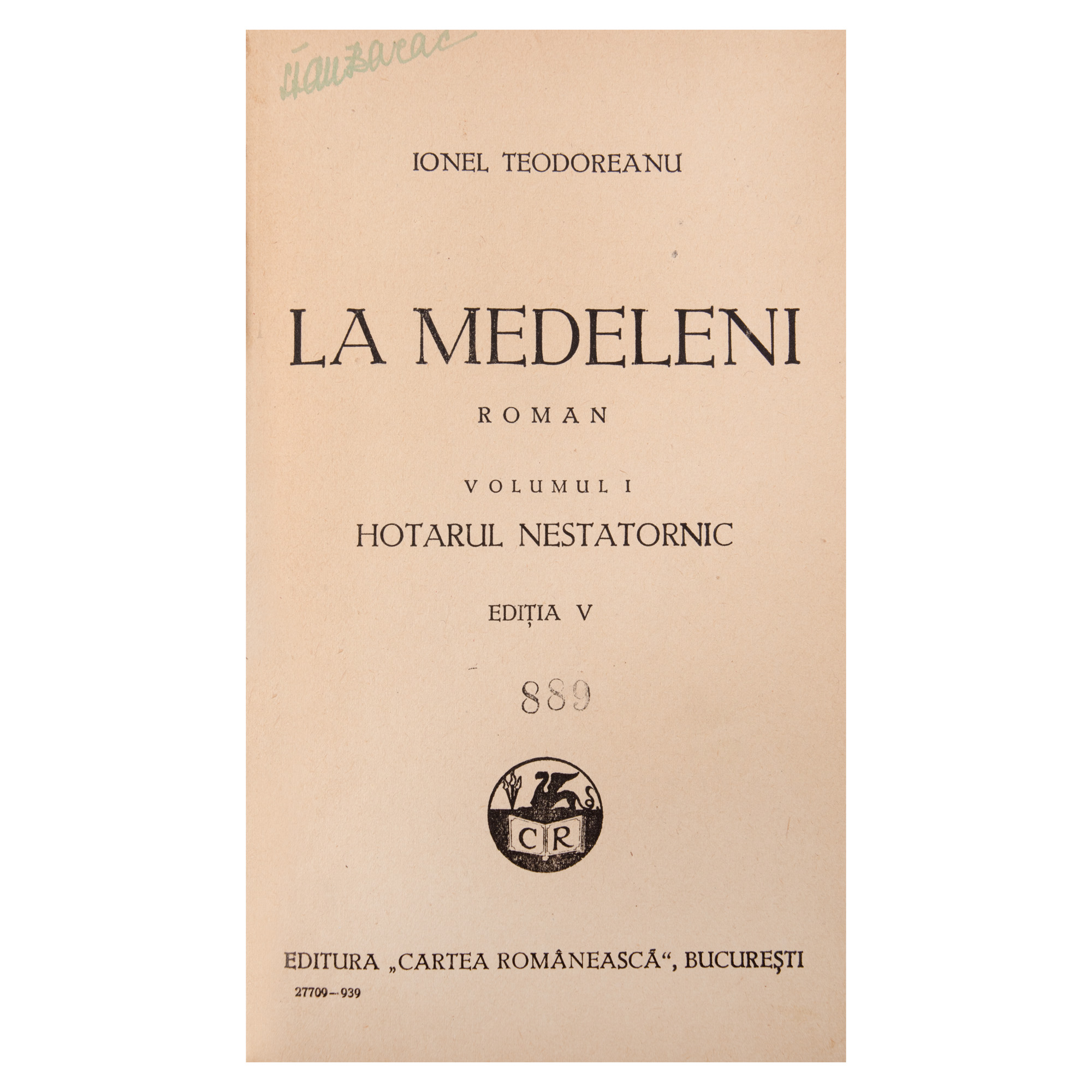 12. "La Medeleni", de Ionel Teodoreanu, trei volume, București, 1939, cu dedicația olografă, semnătura autorului și ex-libris