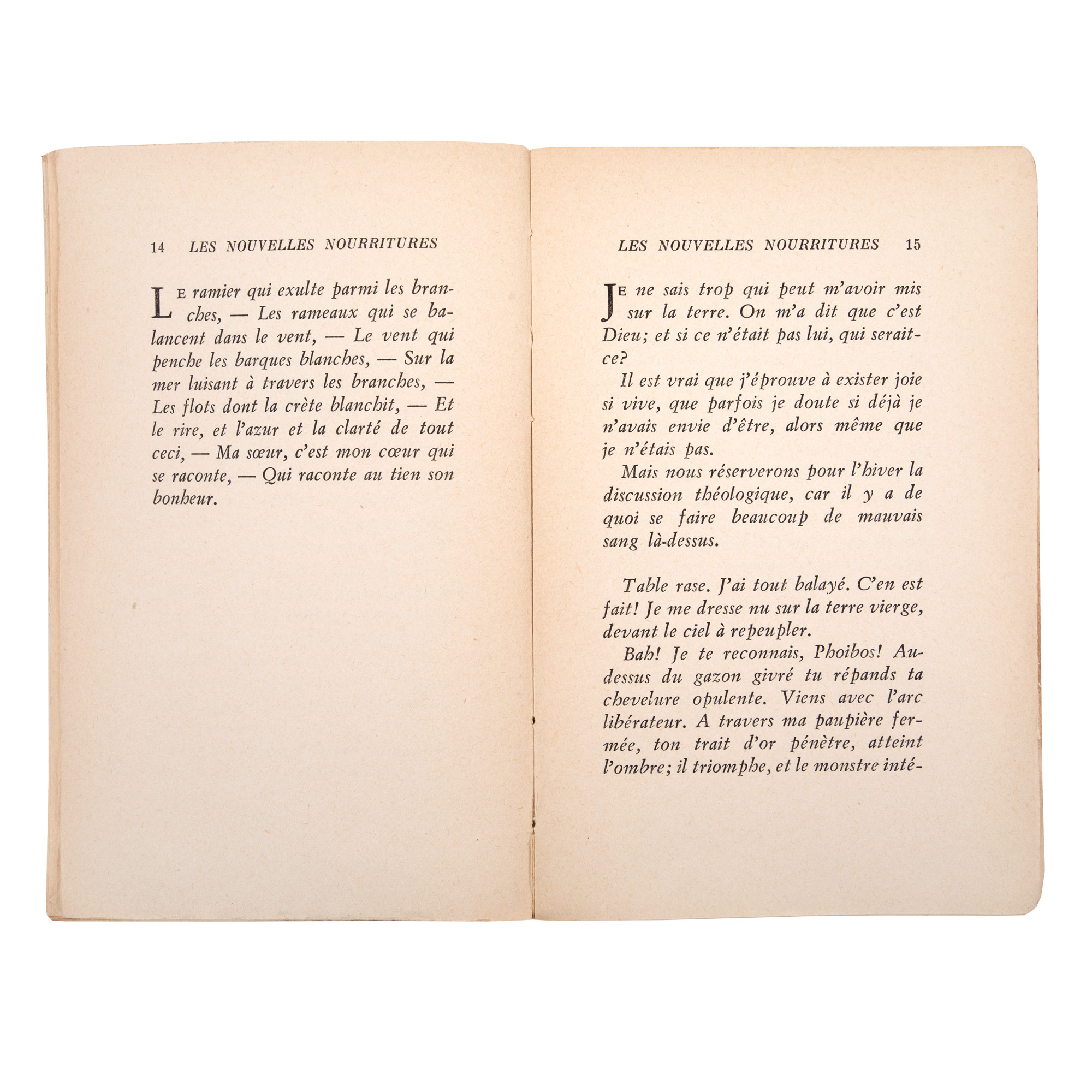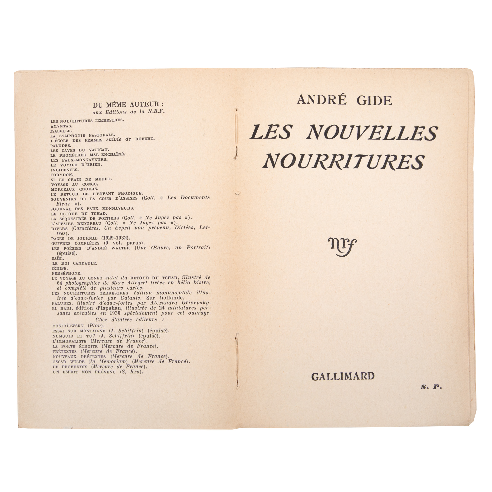 4. "Les nouvelles nourritures", de André Gide, în limba franceză, Paris, 1935, cu dedicația autorului