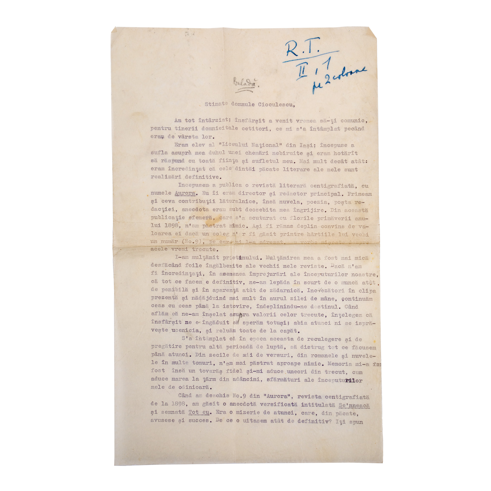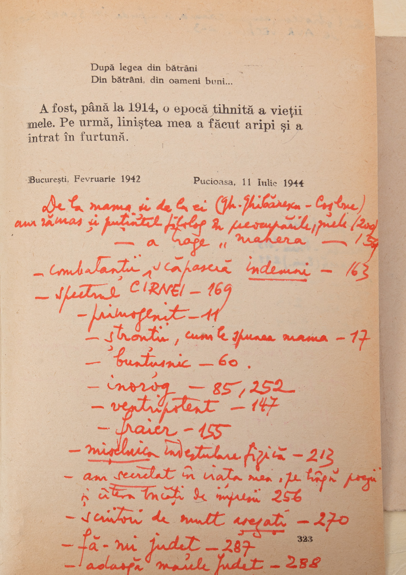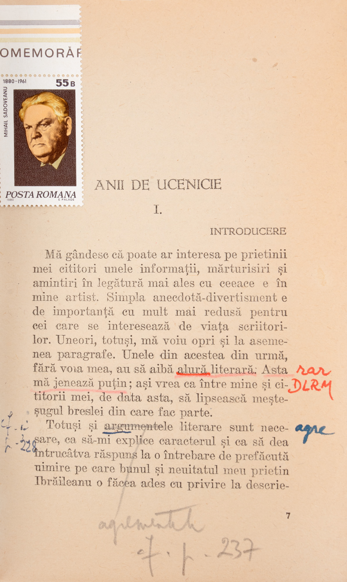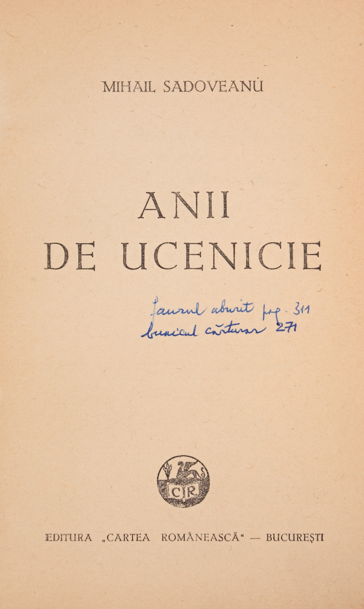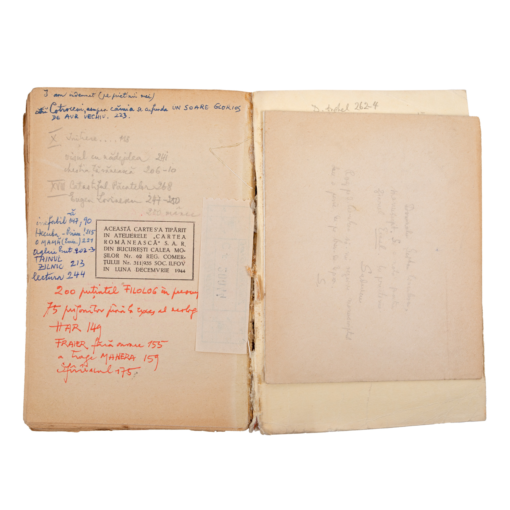 26. Lot complex format din ”Anii de ucenicie”, de Mihail Sadoveanu, București, 1944, cu dedicația autorului către Șerban Cioculescu, și alte documente, provin din colecția criticului literar Șerban Cioculescu