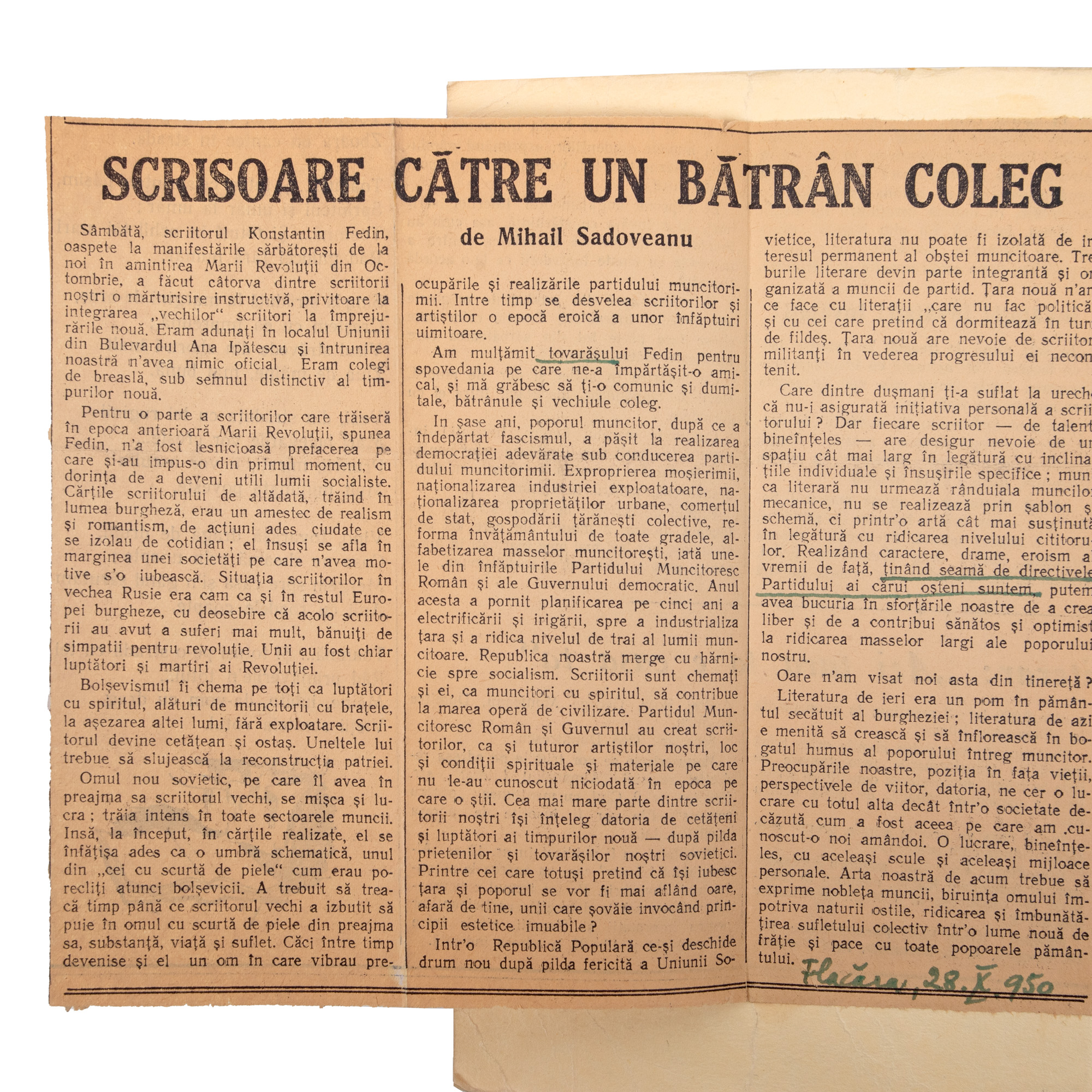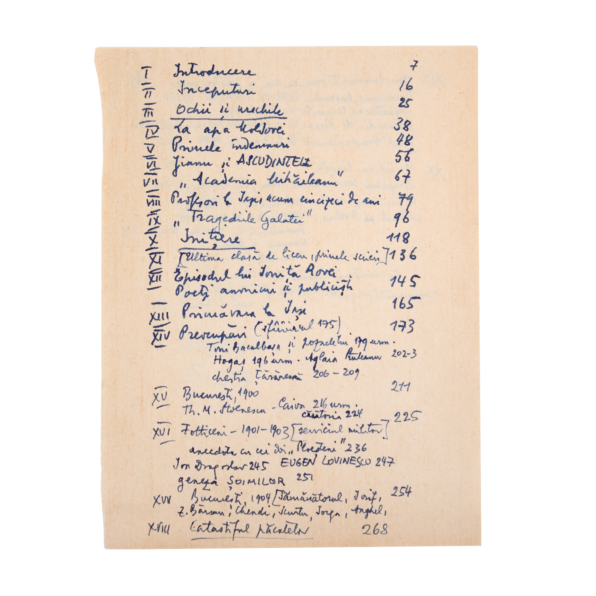 Lotul este alcătuit din: 1. Anii de ucenicie, de Mihail Sadoveanu, București, 1944, cu dedicația olografă a autorului către Șerban Cioculescu și cu numeroase adnotări, sublinieri și comentarii ale criticului literar. 2. Dactilograma unei scrisori trimisă de Sadoveanu lui Cioculescu. 3. Două tăieturi din ziare. 4. Manuscrisul unui articol scris de Șerban Cioculescu despre Sadoveanu. 5. O fișă de lucru a criticului literar. 6. Un bilet olograf redactat și semnat de Sadoveanu.