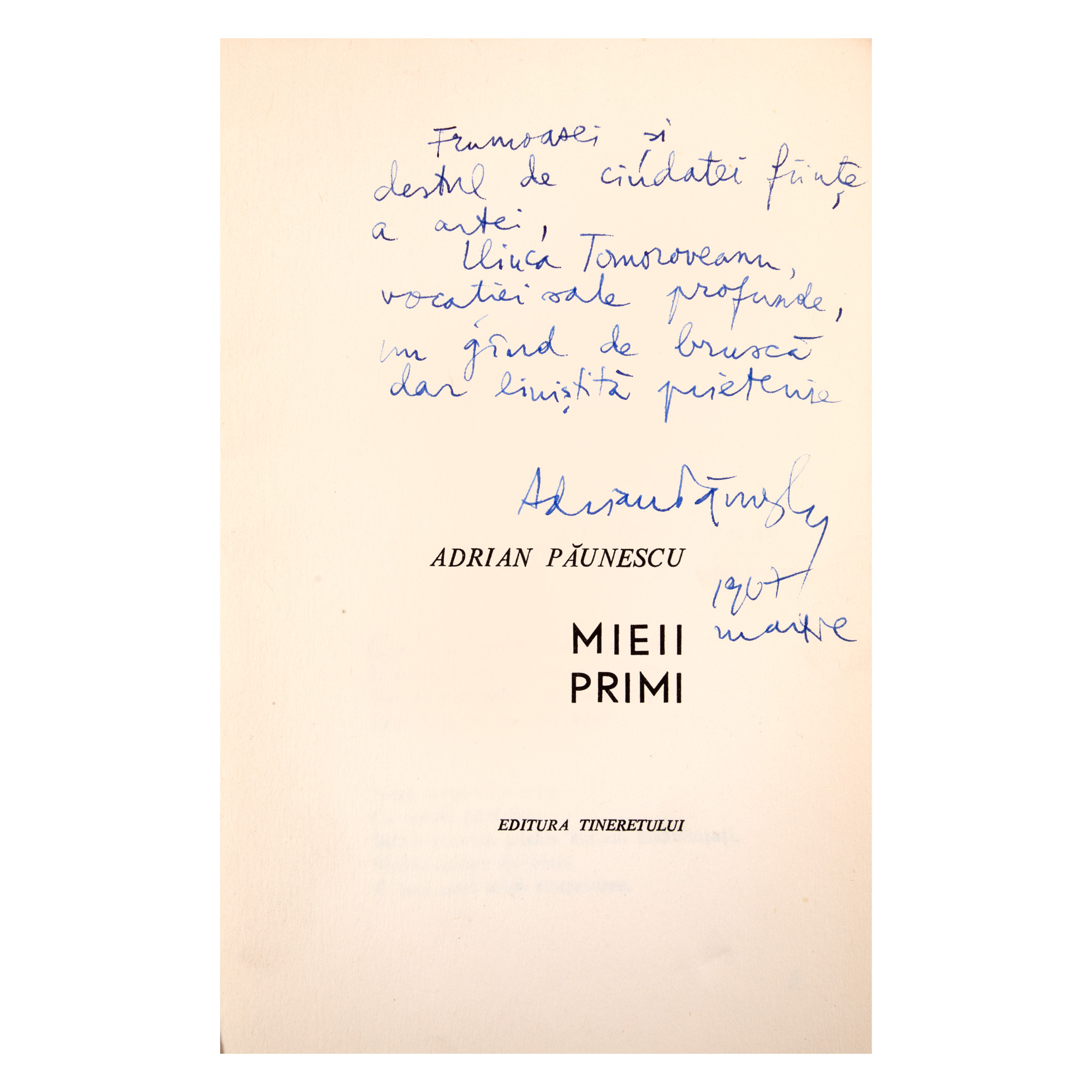 6. ”Mieii Primi” de Adrian Păunescu, București, 1966, cu dedicația și semnătura olografă a autorului