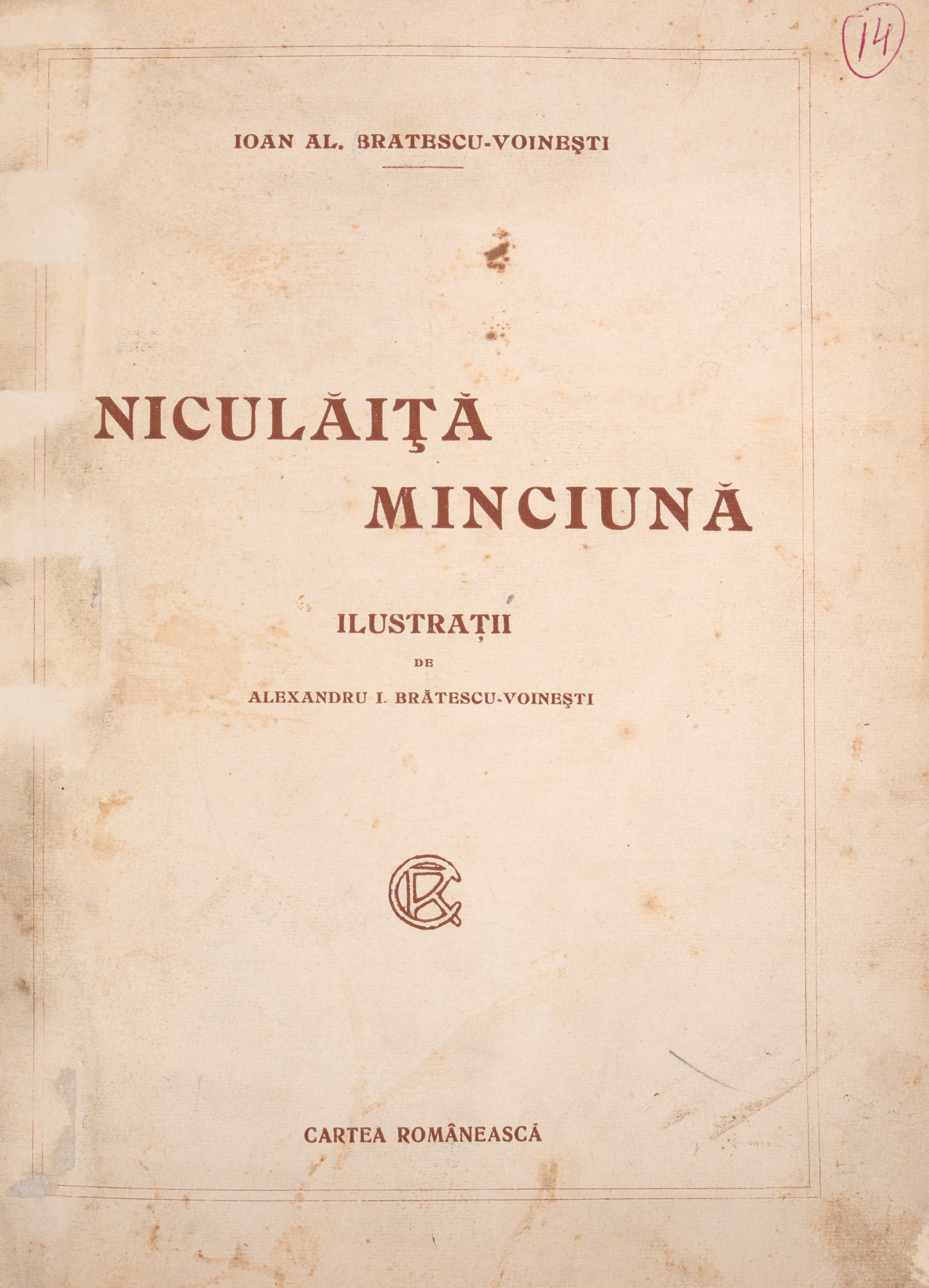 33. "Niculăiță Minciună", de Ioan Al. Brătescu-Voinești, București, 1922, cu semnătura olografă a autorului