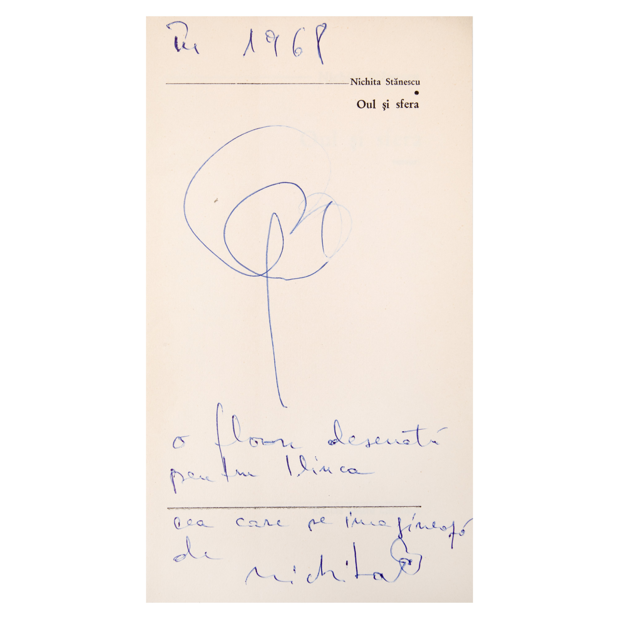 1. ”Oul și sfera”, de Nichita Stănescu, București, 1967, cu un desen, dedicația și semnătura olografă a autorului