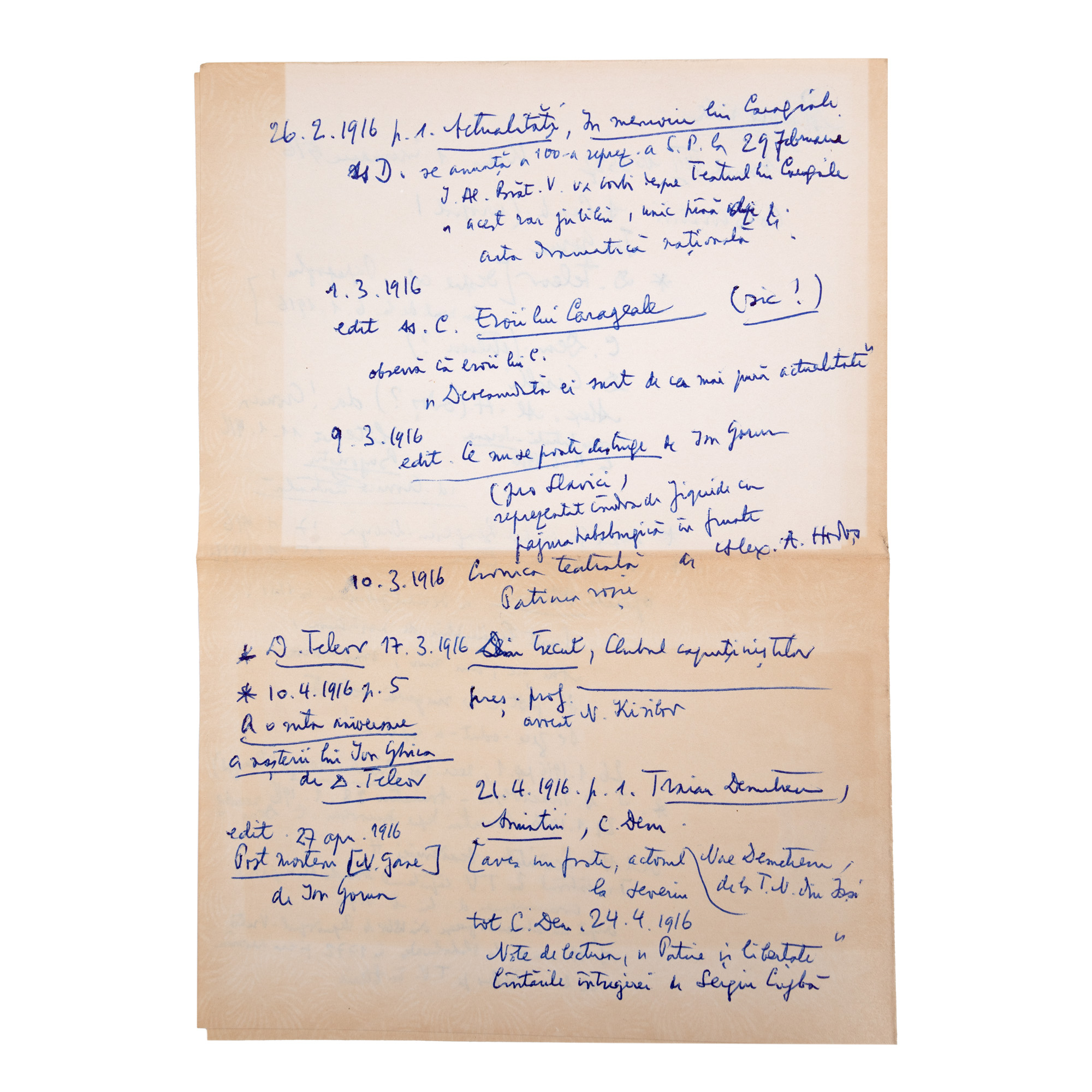 Exemplarul, aflat într-o legătură de epocă din pergamoid, cuprinde numeroase intervenții olografe pe text ale criticului literar, două tăieturi din ziare și șase fișe de lucru, de lectură și bibliografice.