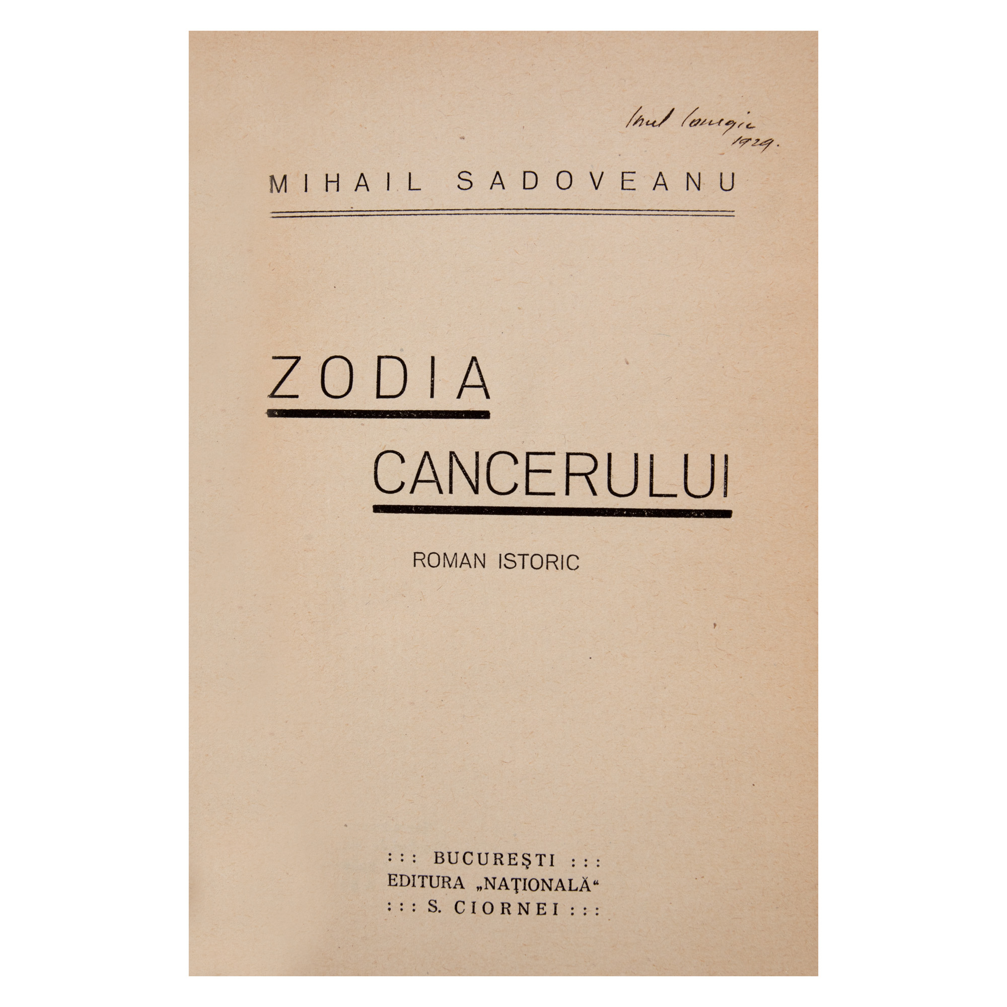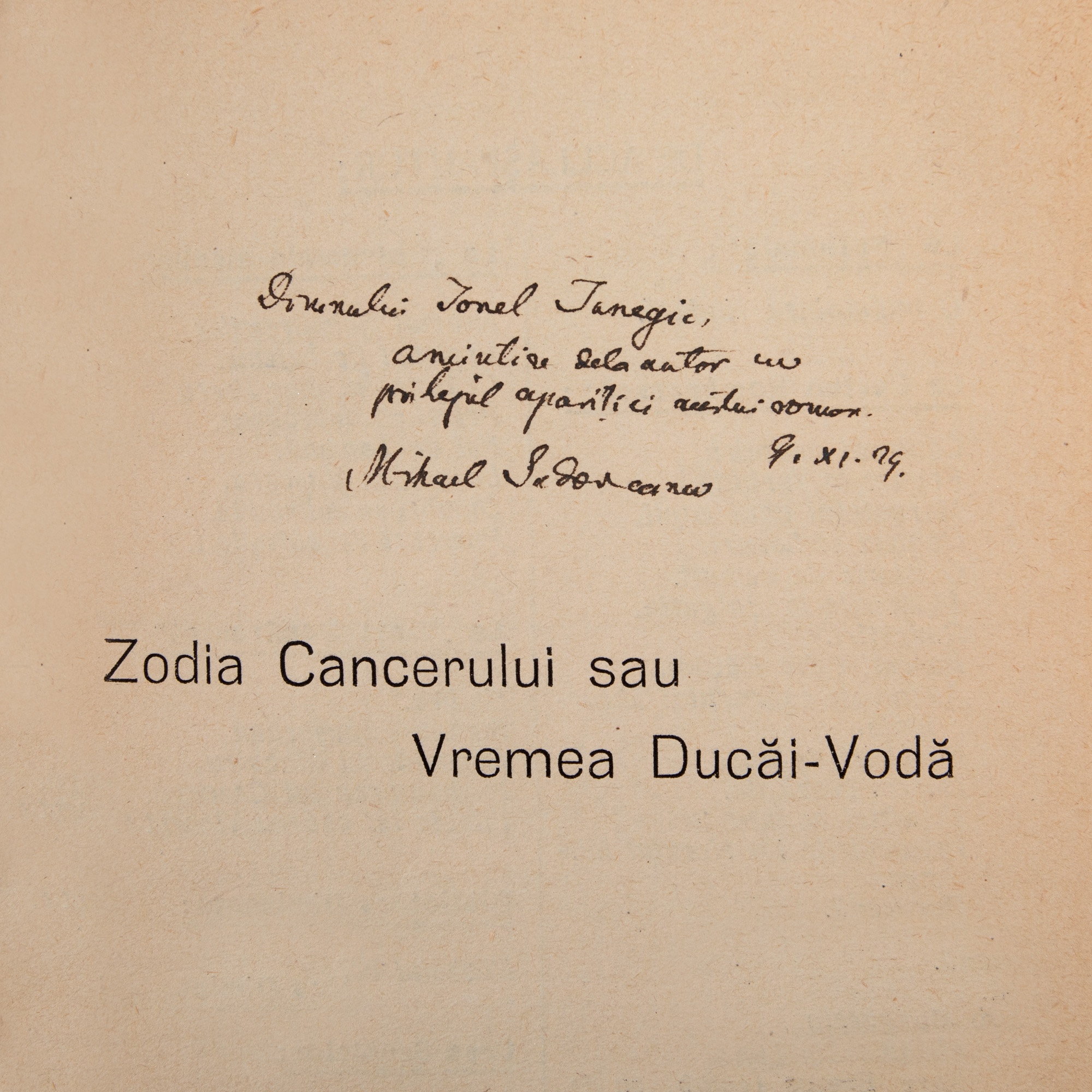 14. "Zodia Cancerului sau Vremea Ducăi Vodă", 2 vol., de Mihail Sadoveanu, București, 1929, cu dedicația olografă a autorului