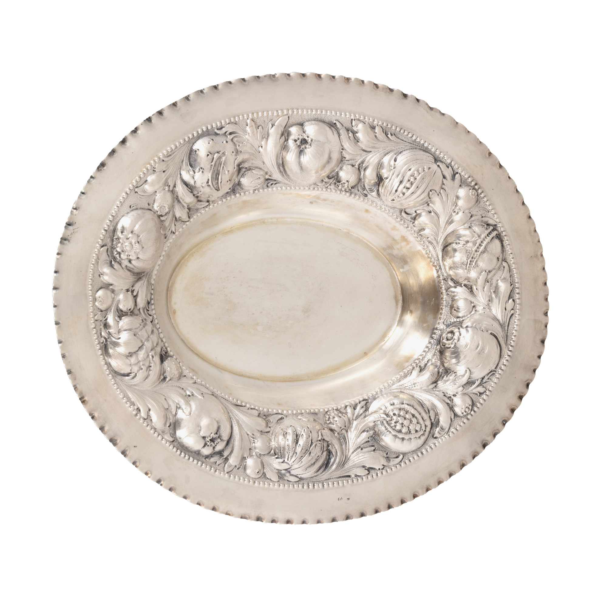 44. Fructieră din argint, cu bordură bogat ornamentată, sfârșitul sec. XIX