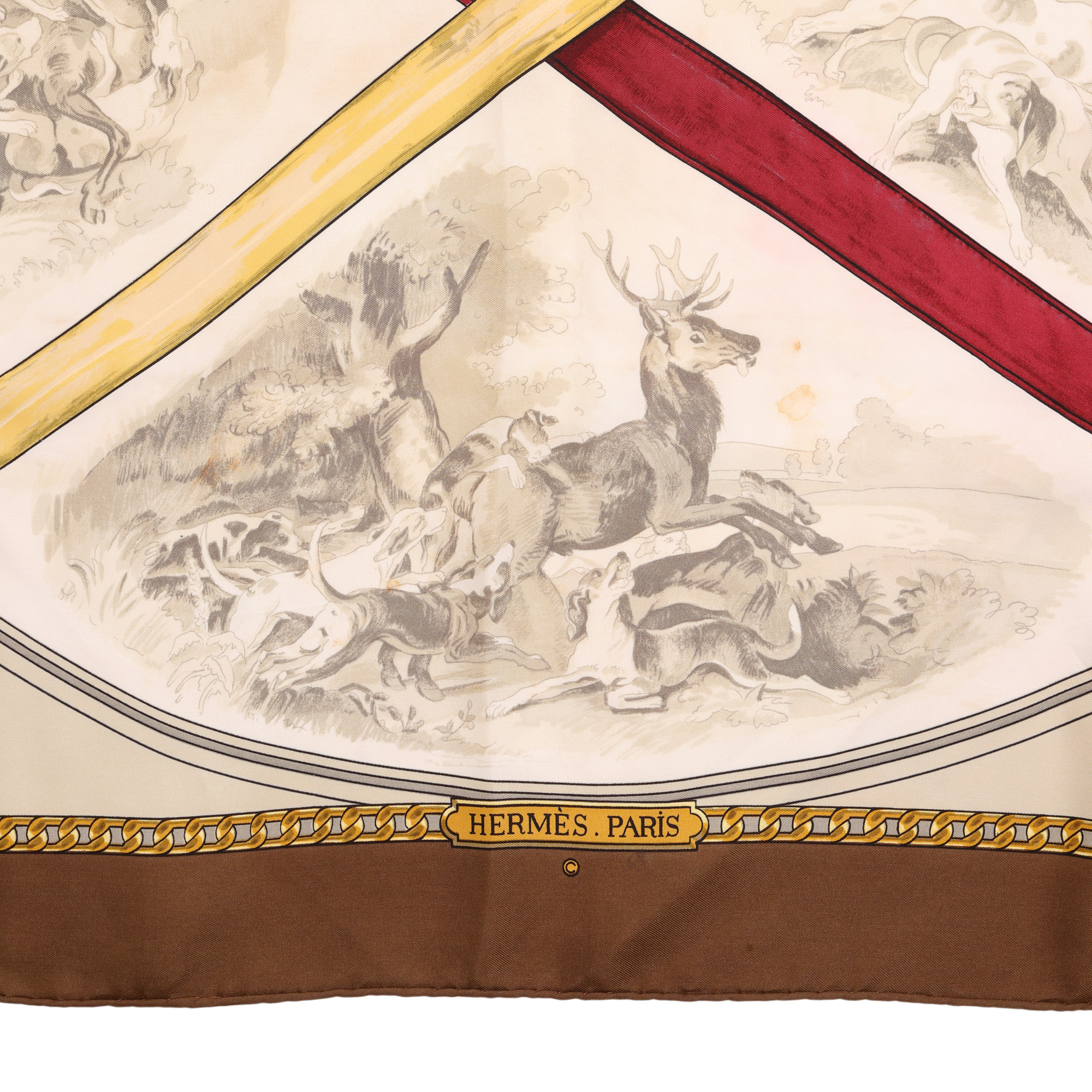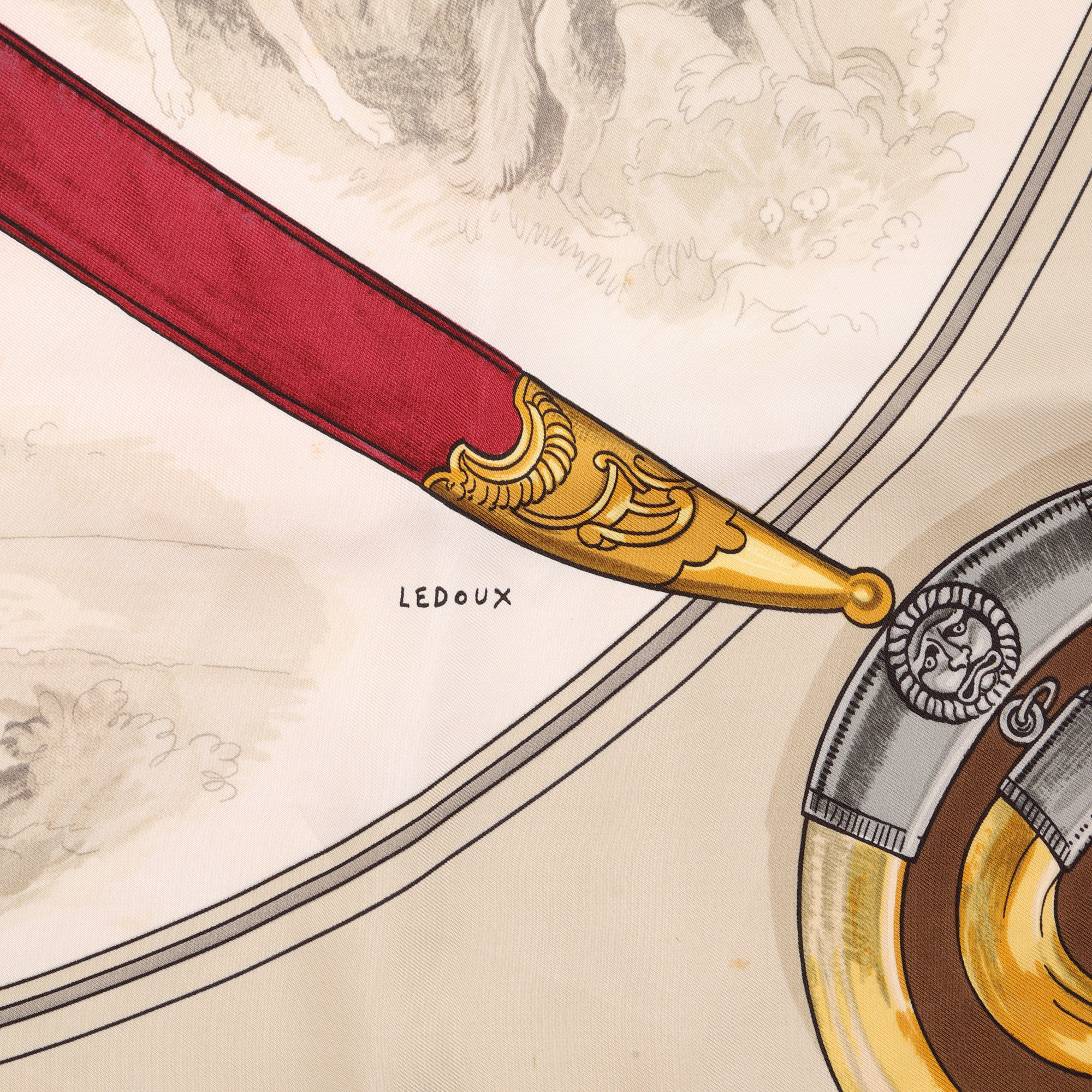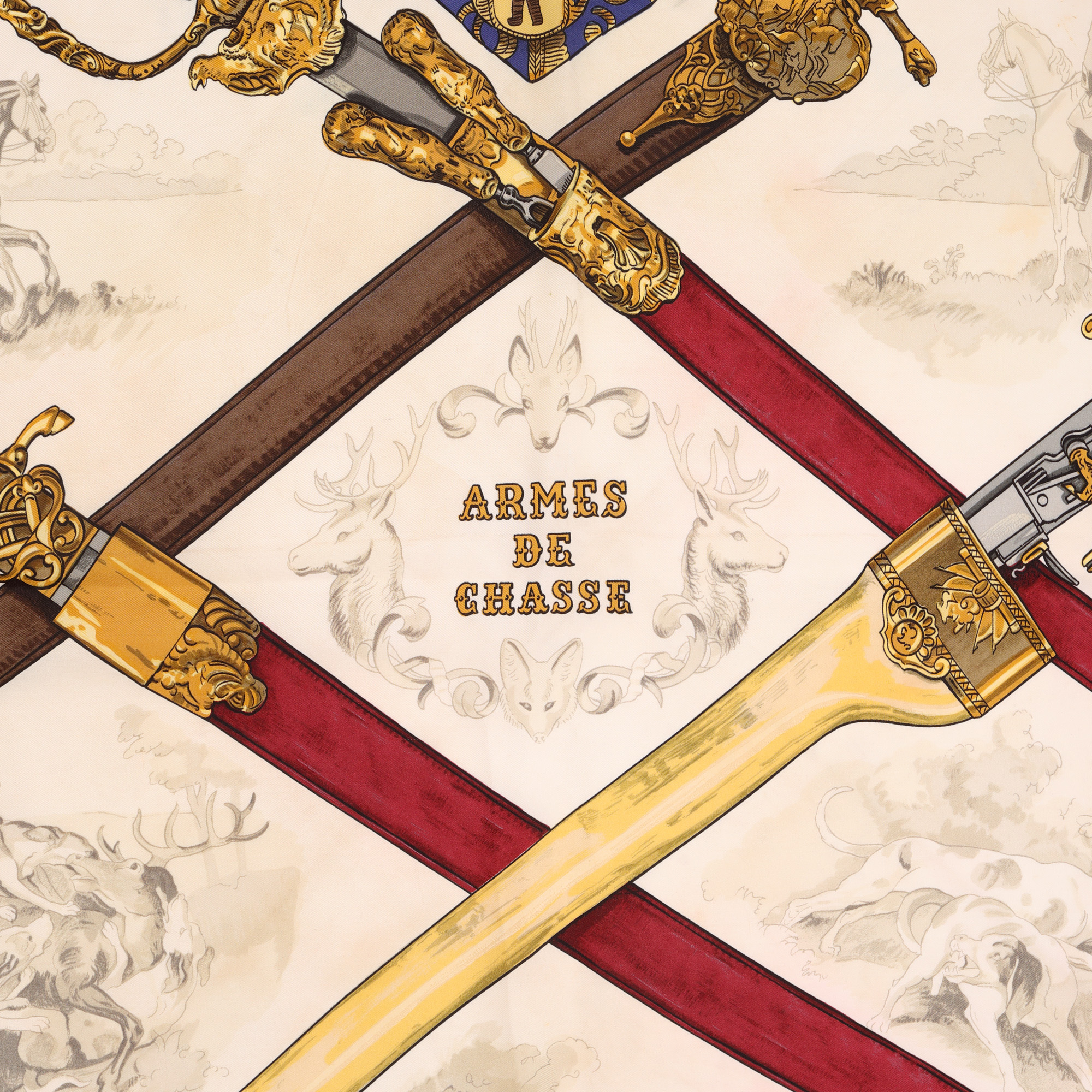 3. Eșarfă Hermès "Armes de Chasse", din mătase naturală, design Philippe Ledoux, cca. 1970