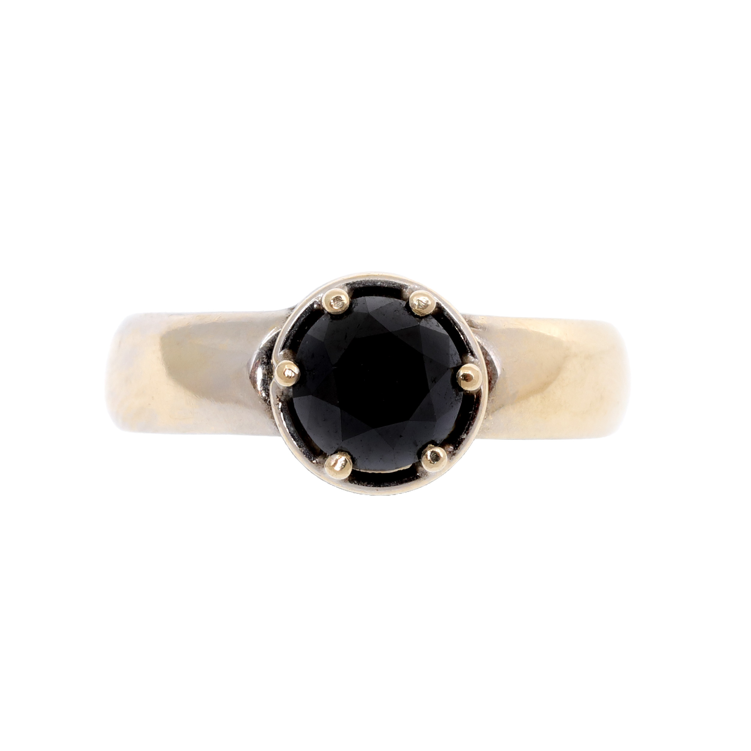 24. Inel din aur alb, decorat cu diamant negru solitaire
