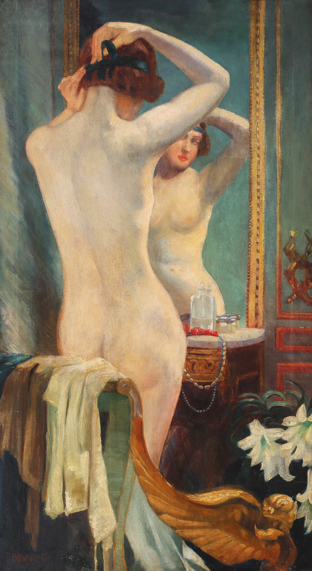 semnat stânga jos, cu brun, "UDVARY G."
