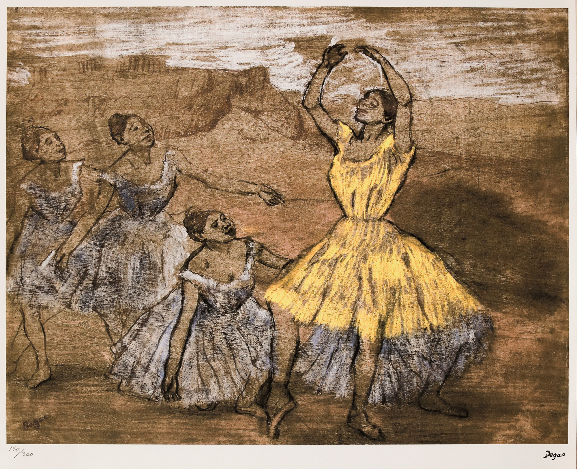 semnat dreapta jos, sub cadru, ”Degas”; numerotat stânga jos, sub cadru, în creion, ”150/300”