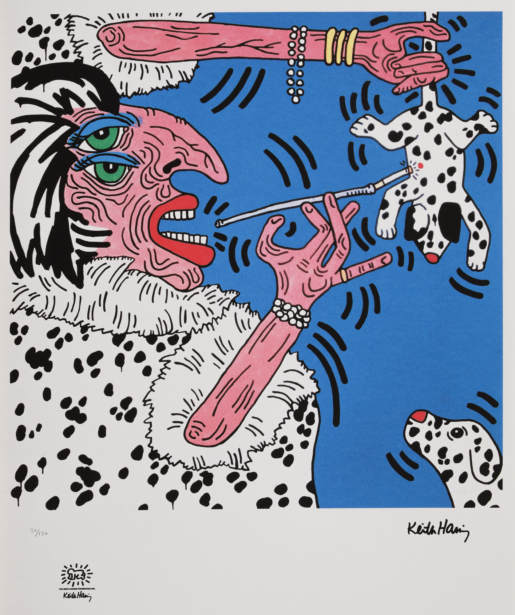 semnat dreapta jos, sub cadru, ”Keith Haring”; numerotat stânga jos, sub cadru, în creion, ”30/150”; stânga jos, ștampila editurii, ”Keith Haring”