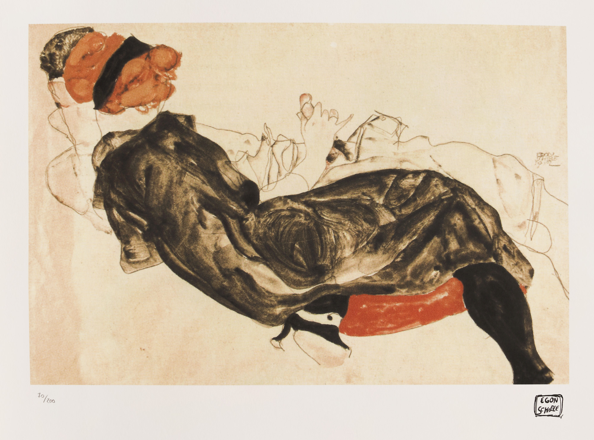 semnat dreapta jos, sub cadru, cu negru, ”Egon Schiele”; numerotat stânga jos, în creion, ”70/200”