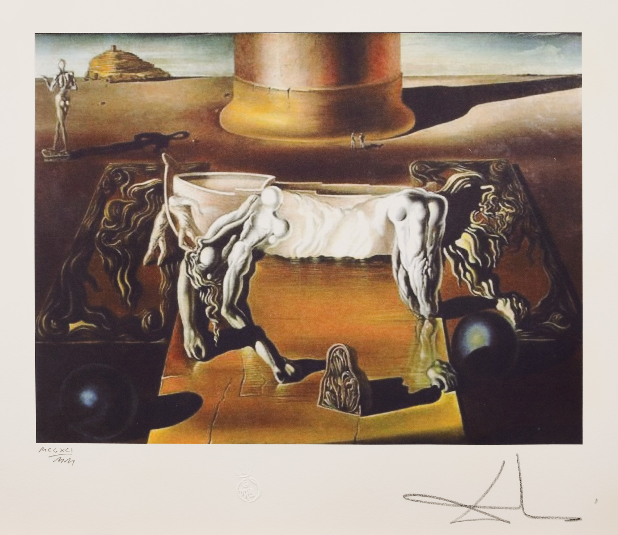 semnat dreapta jos, sub cadru, în creion, ”Dali”; numerotat stânga jos, în creion, ”1291/2000”; ștampila editurii, central jos, ”G. Dali”