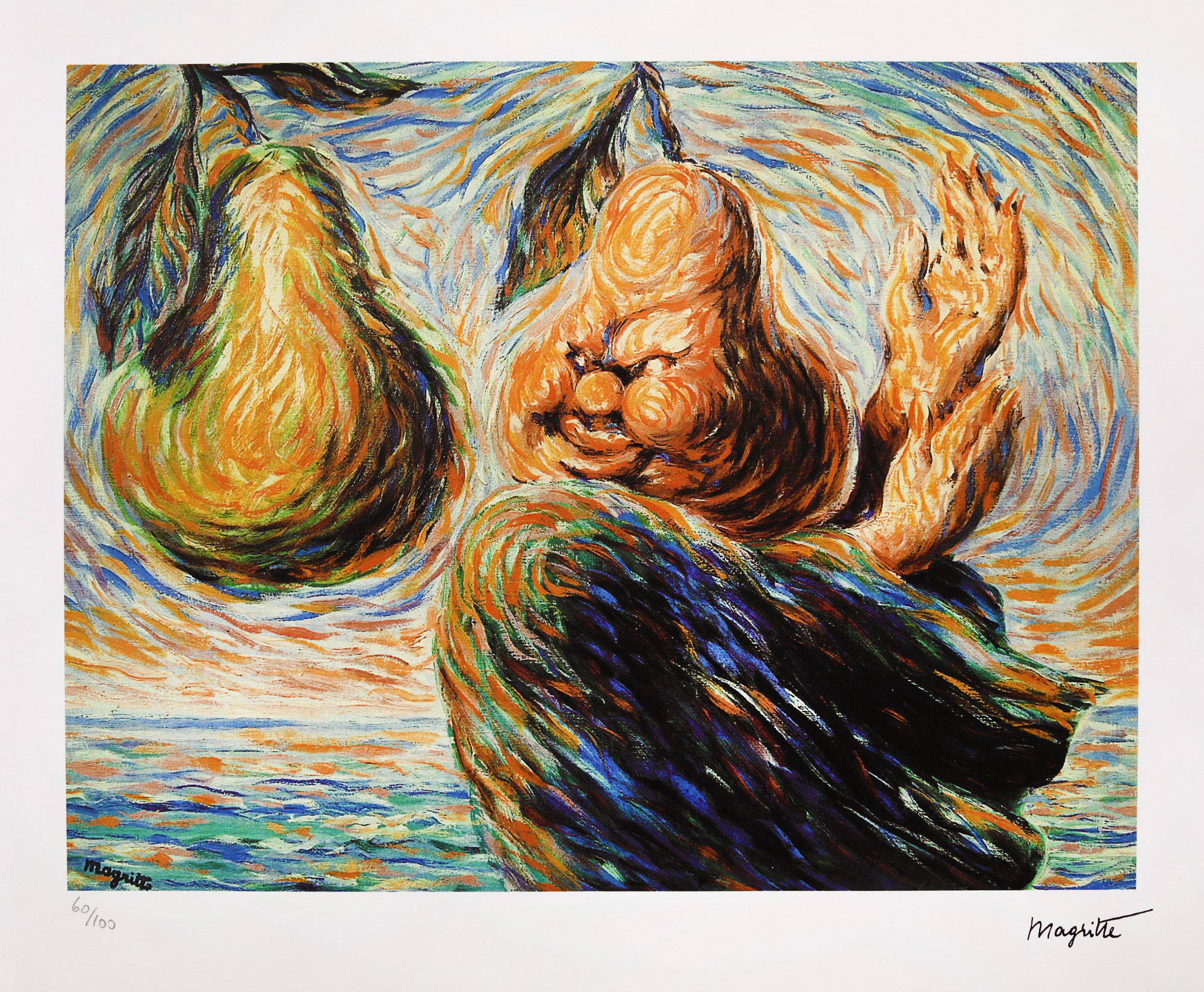 semnat dreapta jos, sub cadru, "Magritte"; numerotat stânga jos, în creion, "60/100"; stânga jos, ștampila editurii, "SPADEM, Paris"