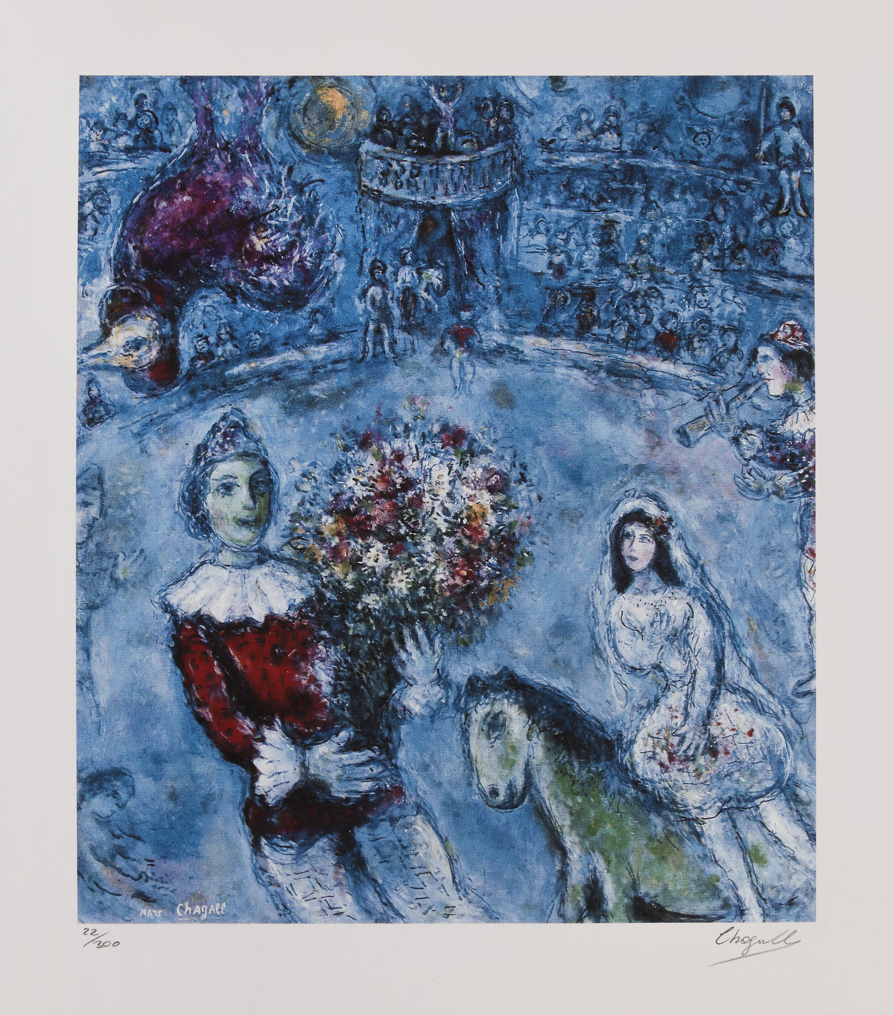 semnat dreapta jos, sub cadru, ”Chagall”; numerotat stânga jos, sub cadru, în creion, ”22/300”