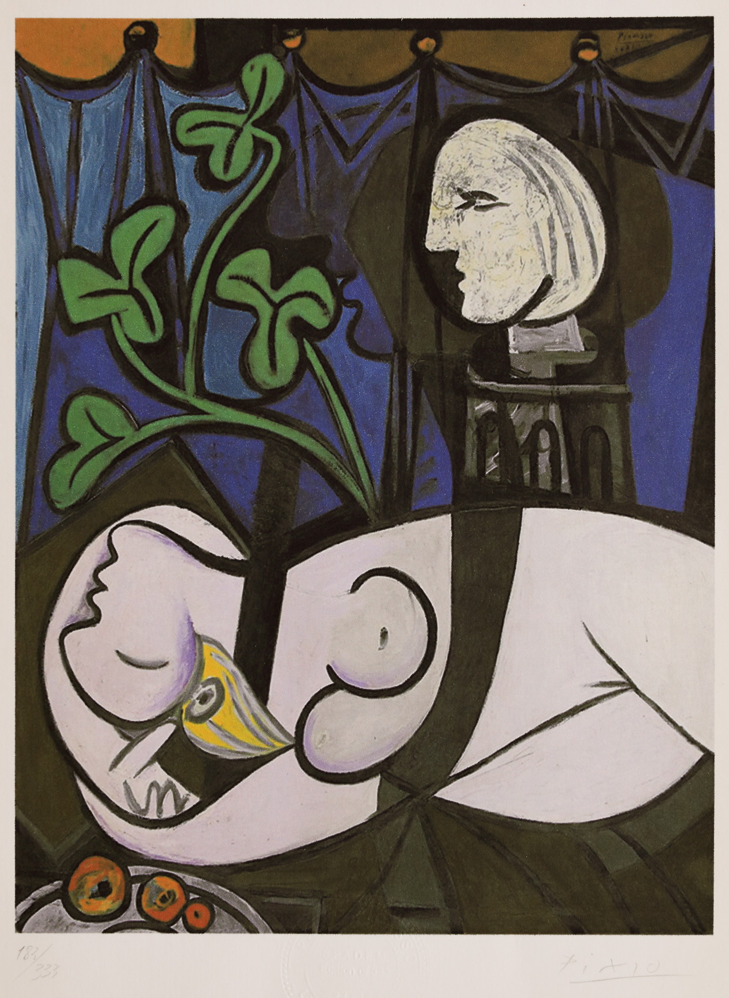 semnat dreapta jos, sub cadru, în creion, "Picasso"; numerotat stânga jos, sub cadru, în creion, "183/333"; central jos, ștampila editurii, "SPADEM, Paris"