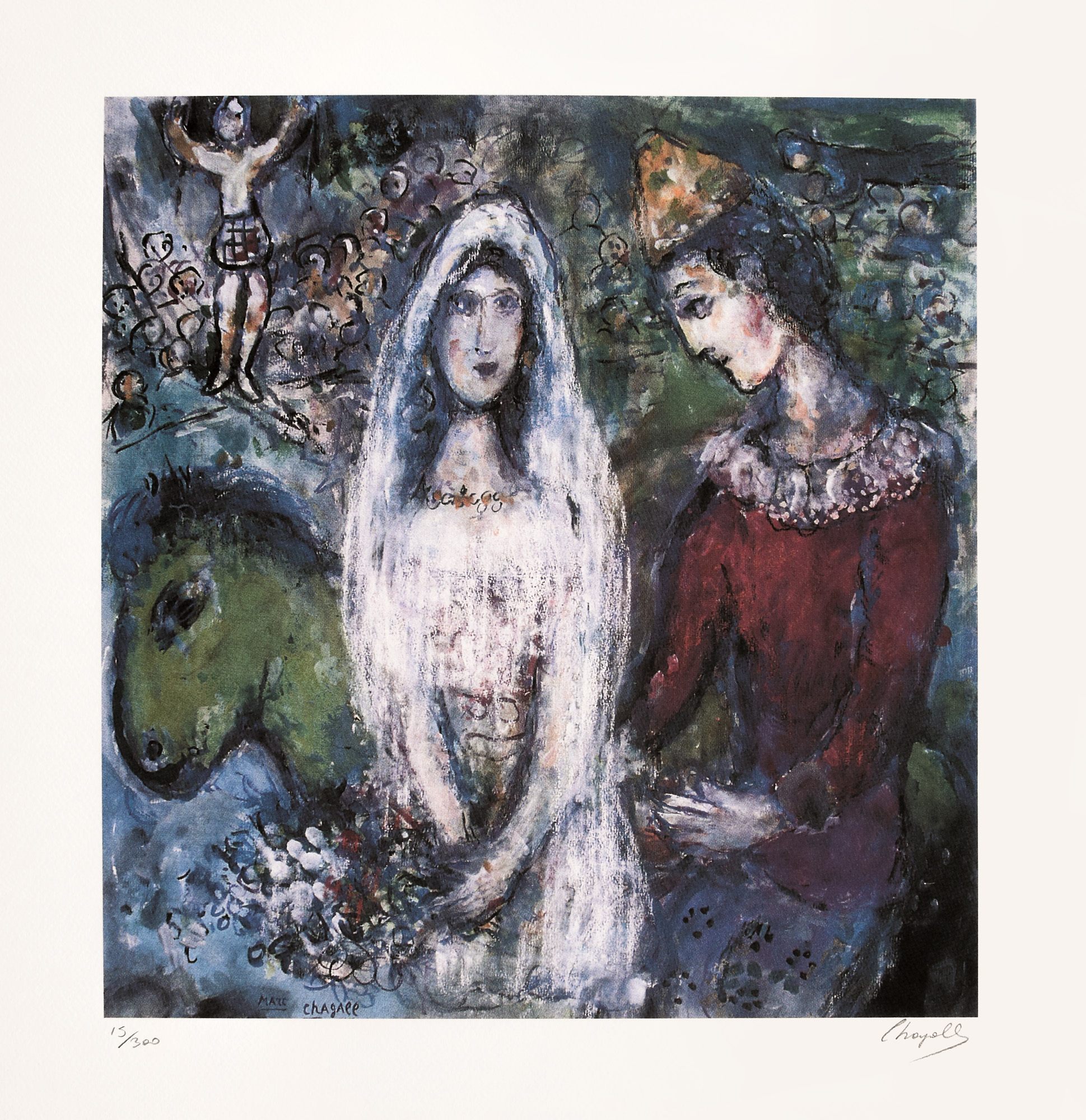 semnat dreapta jos, sub cadru, ”Chagall”; numerotat stânga jos, sub cadru, în creion, ”15/300”; stânga jos, ștampila editurii, ”SPADEM Paris”