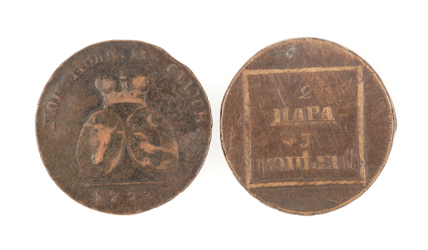 5. Lot format din două monede de 2 parale / 3 copeici 1773, provin din colecţia Dimitrie I. Ghica