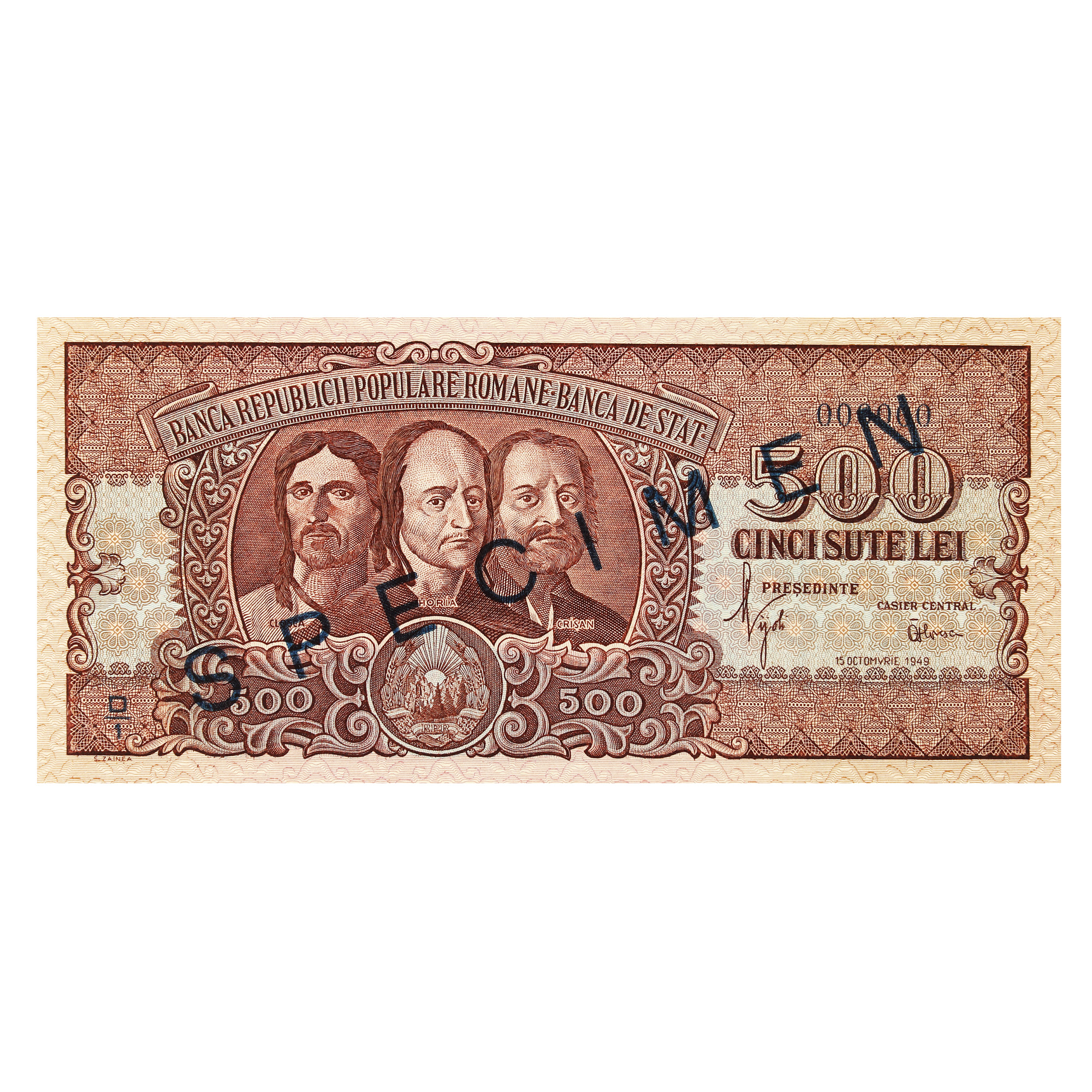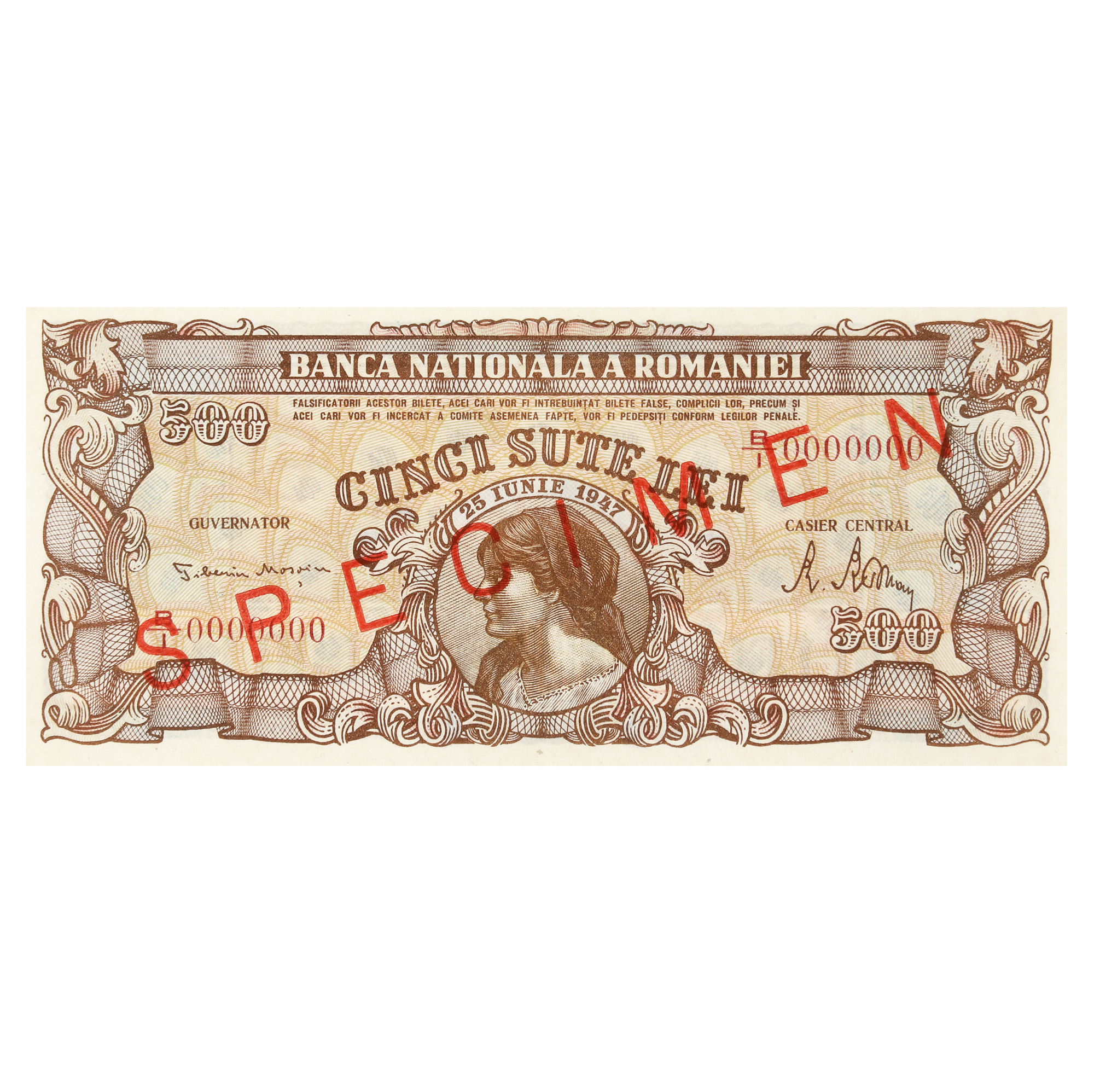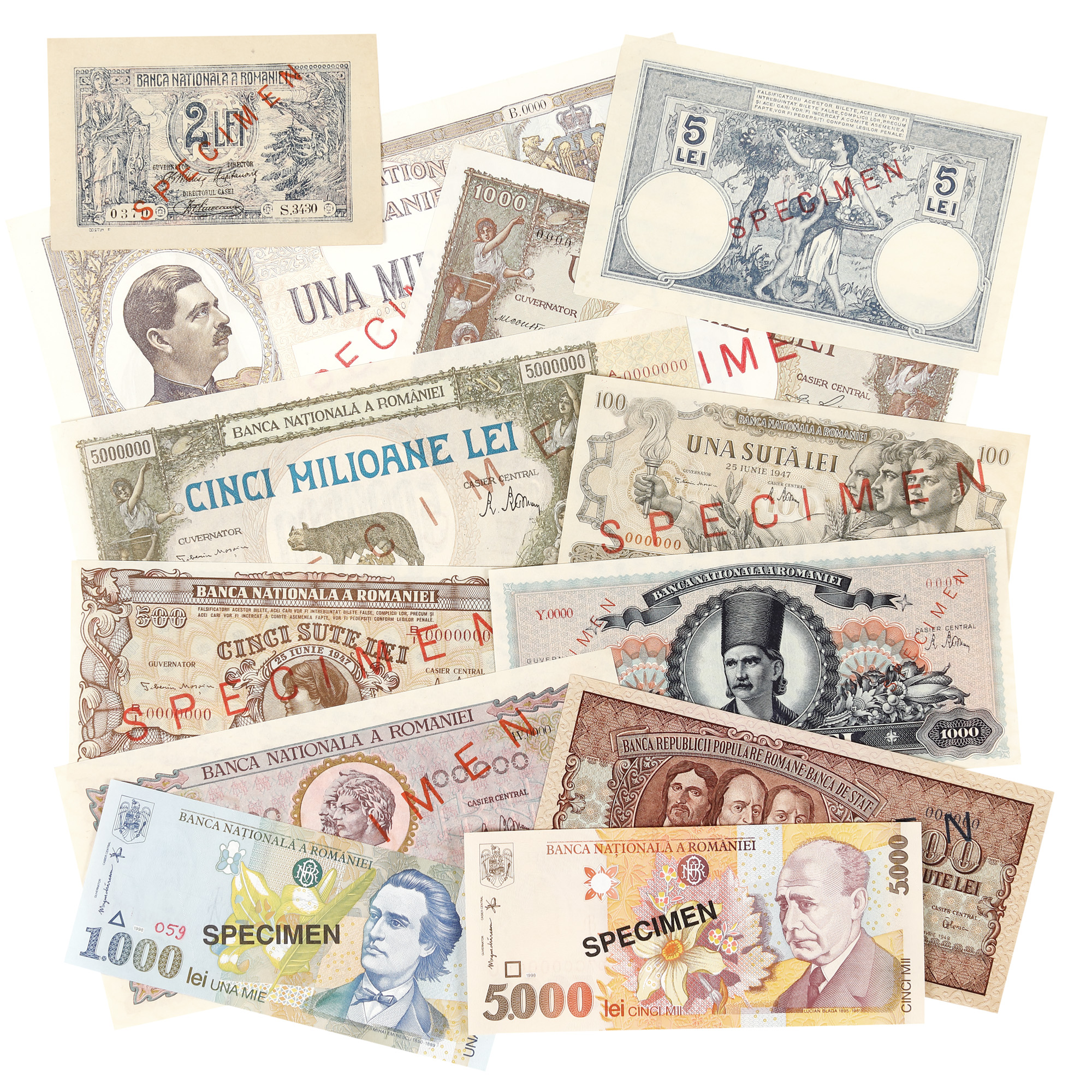 2 Lei 1920, 1000 Lei 1934,1000 Lei 1936, 5 Lei 1938, 100 Lei, 500 Lei, 1000 Lei, 100000 Lei, 5000000 Lei 1947, 500 Lei 1949, 1000 Lei, 5000 Lei 1998