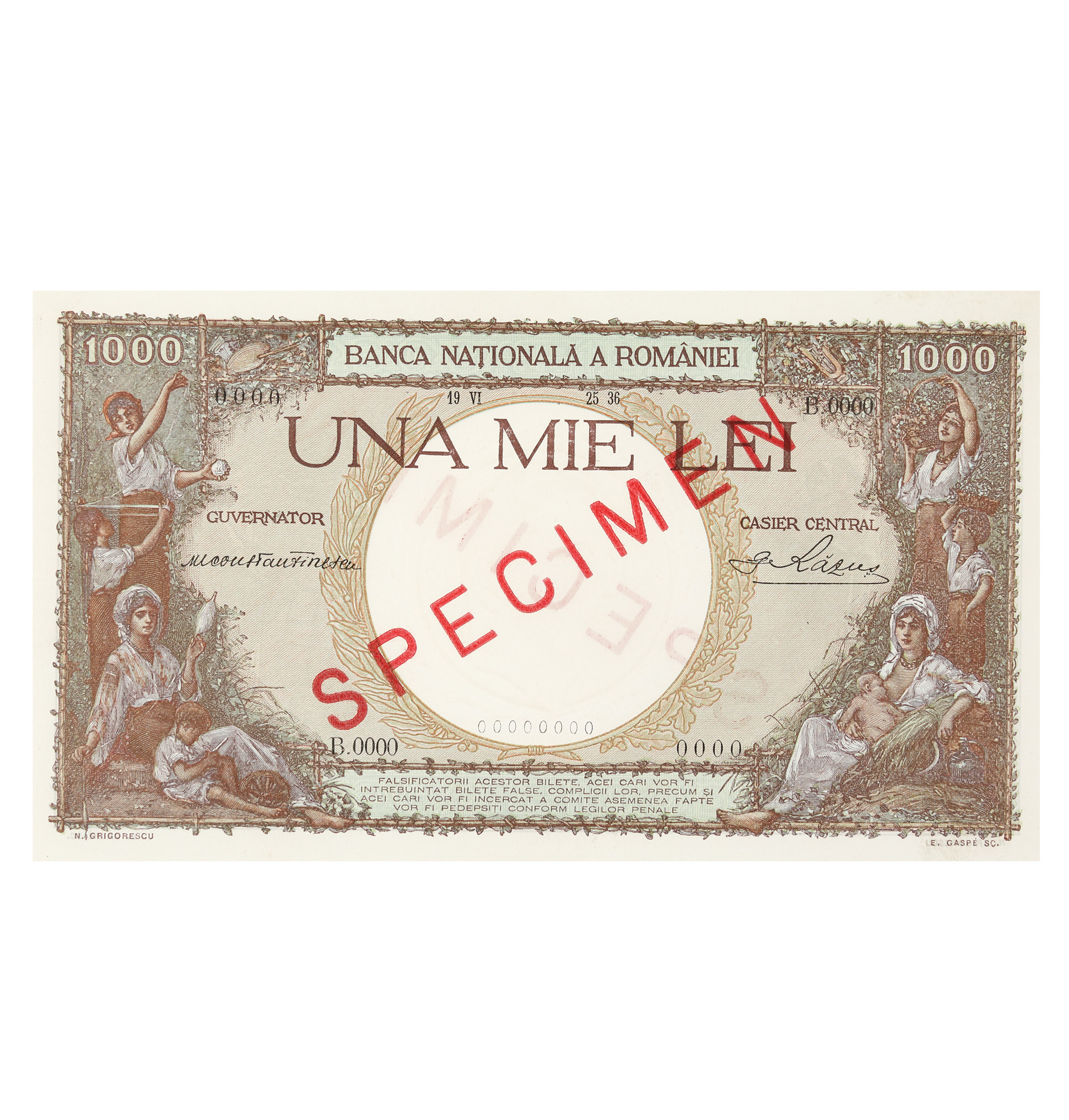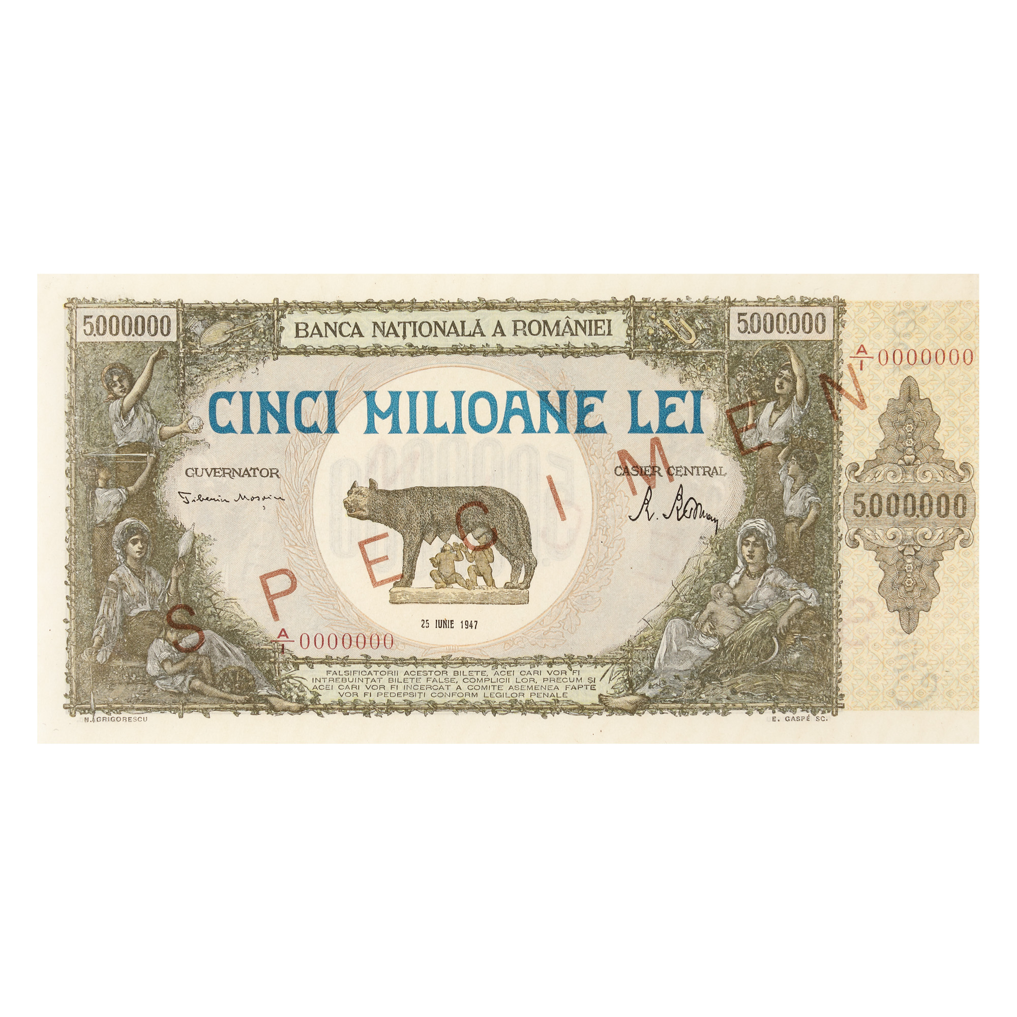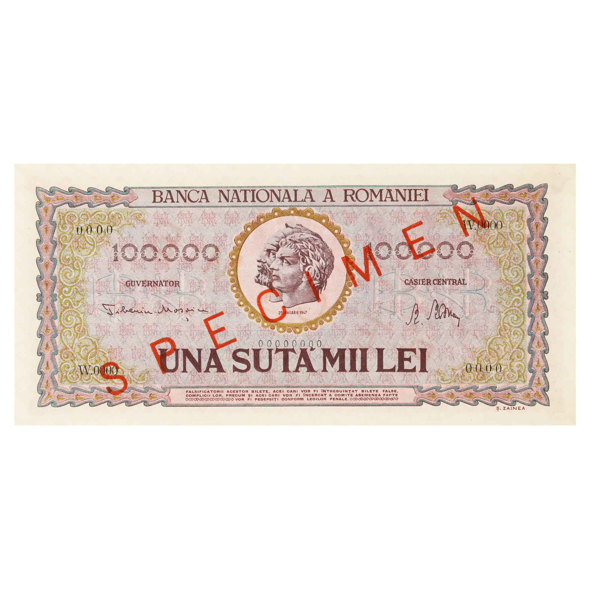 2 Lei 1920, 1000 Lei 1934,1000 Lei 1936, 5 Lei 1938, 100 Lei, 500 Lei, 1000 Lei, 100000 Lei, 5000000 Lei 1947, 500 Lei 1949, 1000 Lei, 5000 Lei 1998