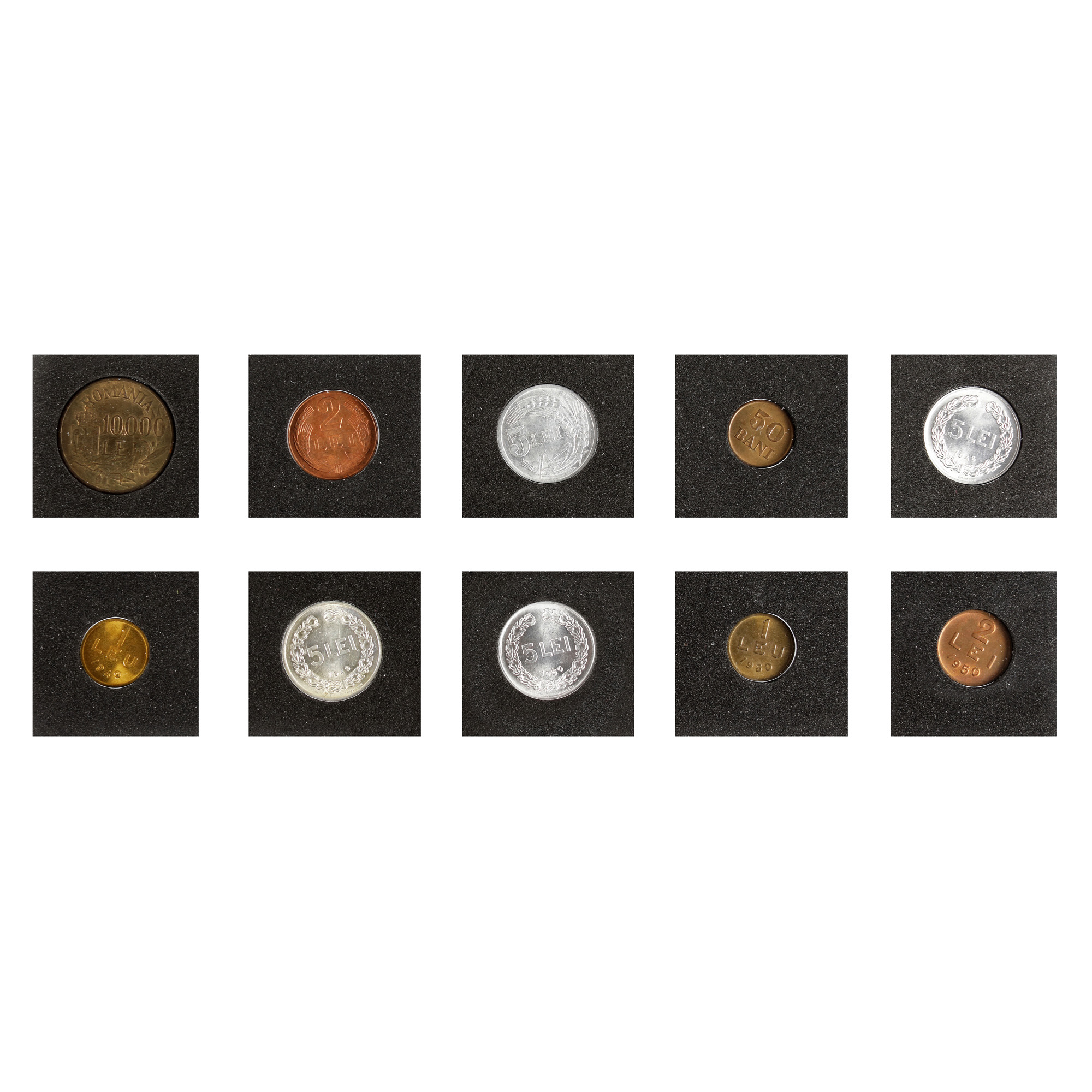 18. Lot format din zece monede, 50 Bani, 2 Lei, 5 Lei, 10000 Lei 1947, 5 Lei 1948, 1 Leu, 5 Lei 1949, 1 Leu, 2 Lei, 5 Lei 1950