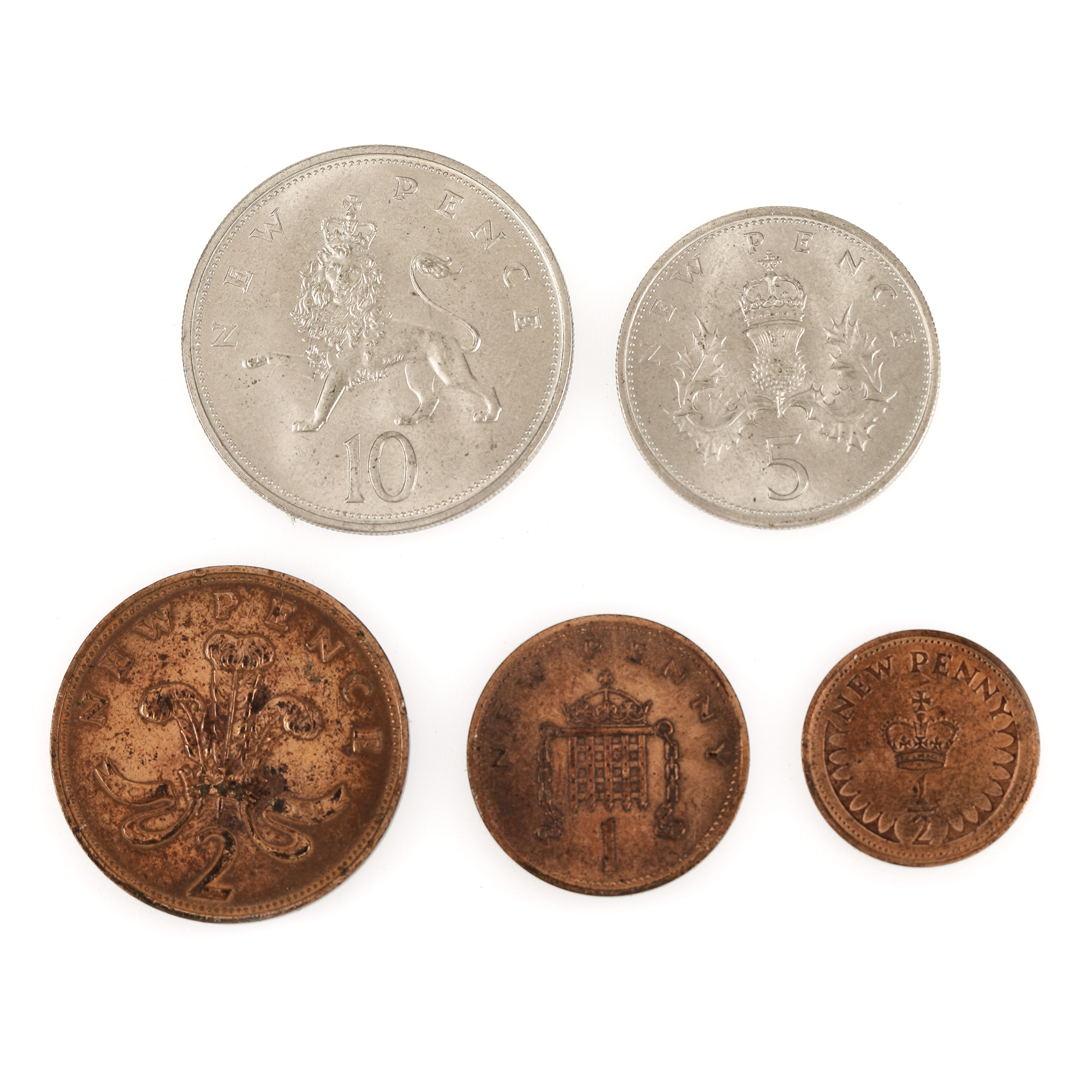 30. Set format din cinci monede din prima emisiune britanică zecimală, Marea Britanie, 1971