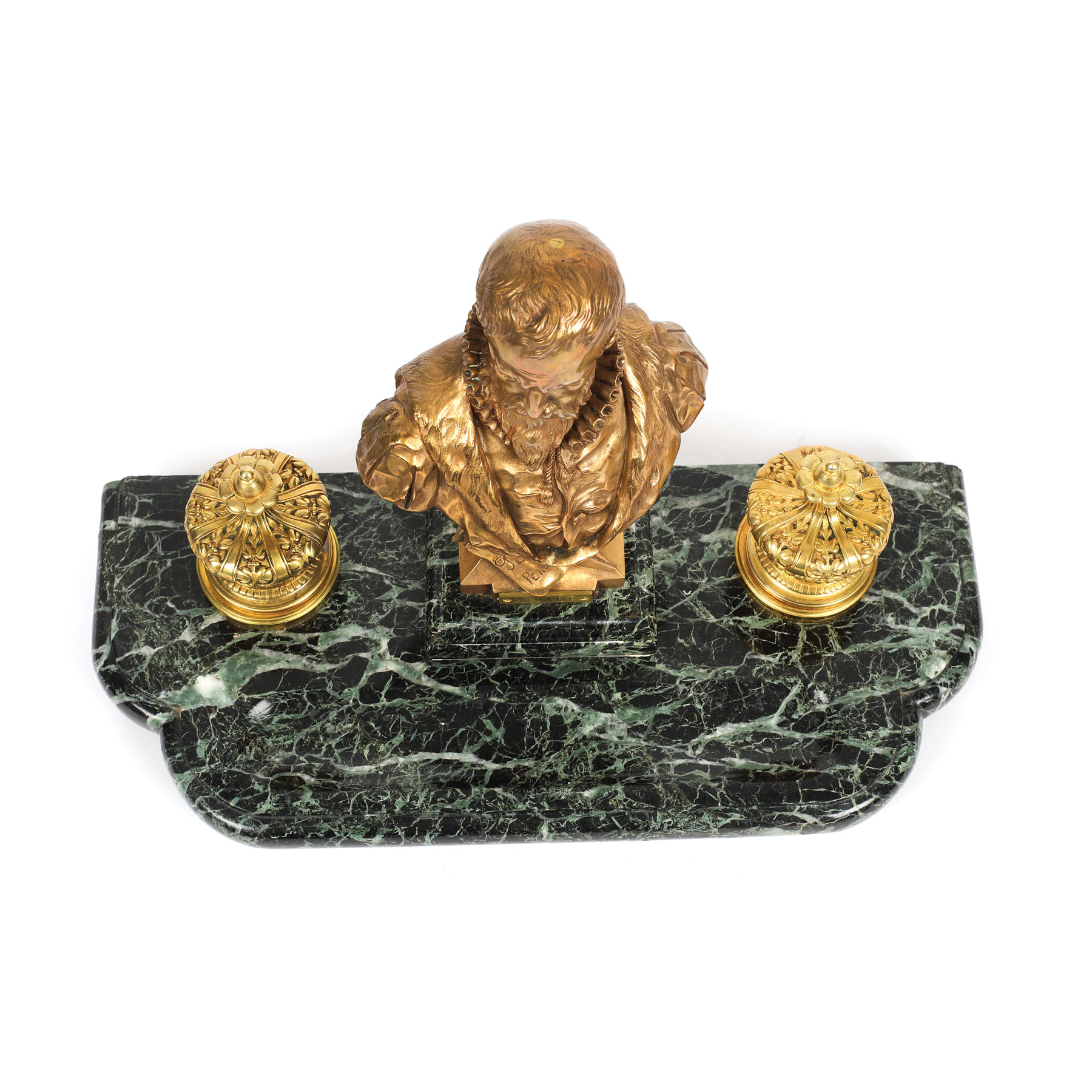 15. Călimară și suport pentru instrumente de scris, cu bustul chirurgului regal Ambroise Paré, sec. XIX