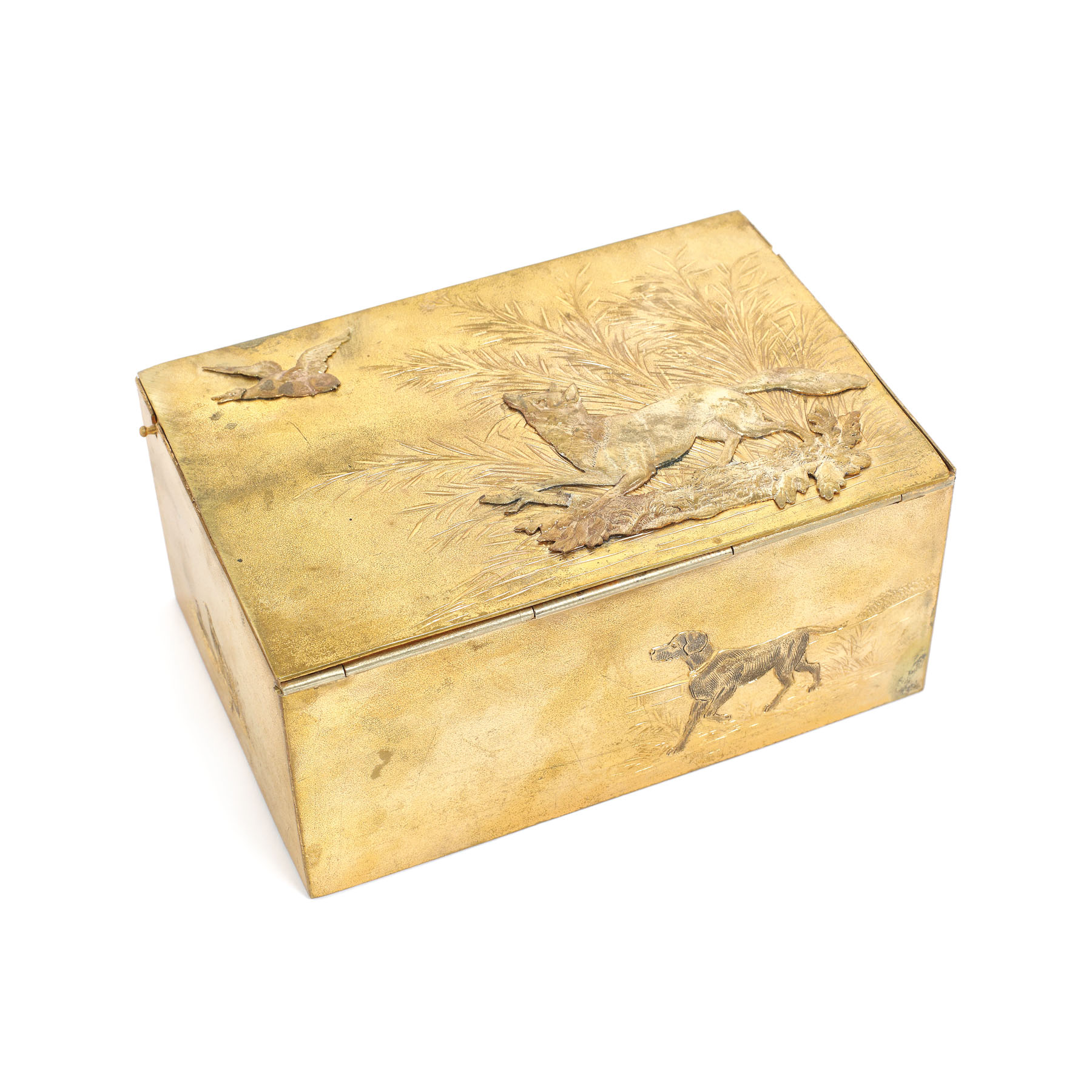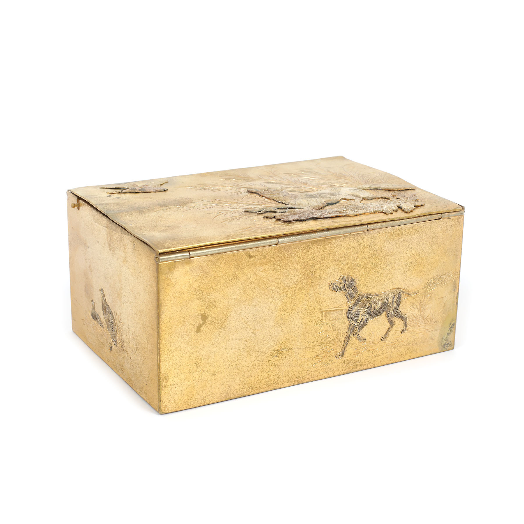 41. Cutie pentru tutun, decorată cu simboluri vânătorești, începutul sec. XX
