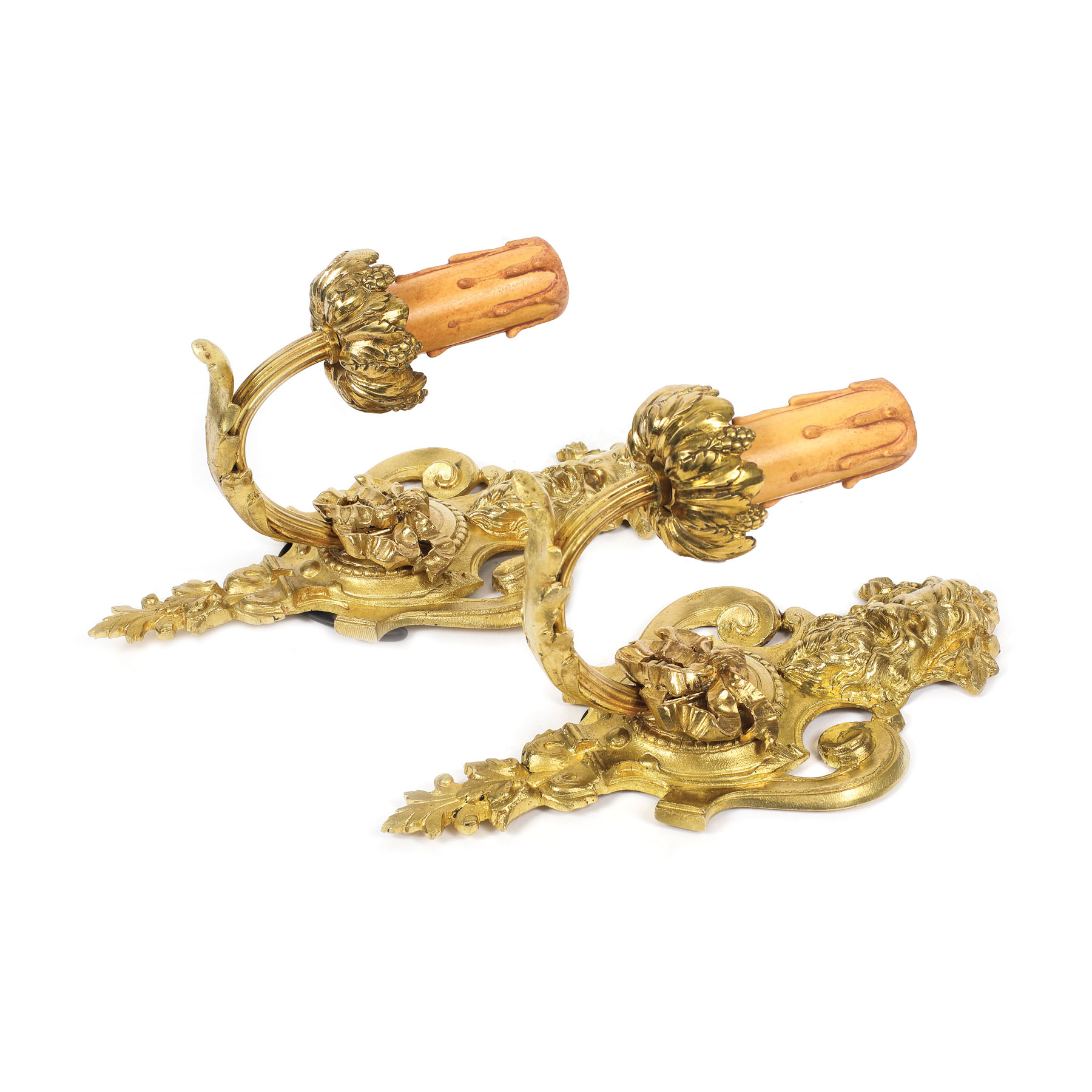 35. Pereche de aplice din bronz doré, decorată cu capete de satiri, sfârșitul sec. XIX