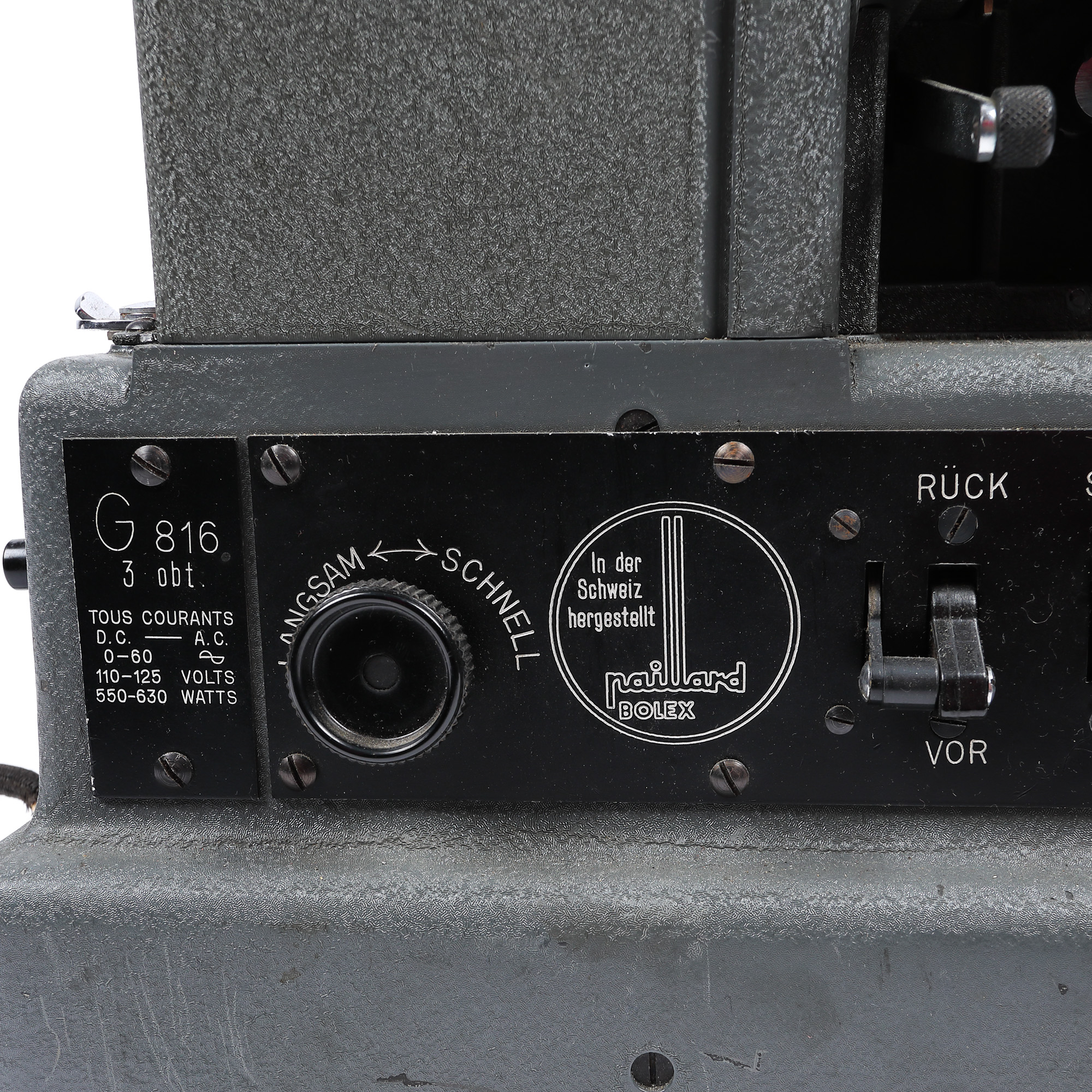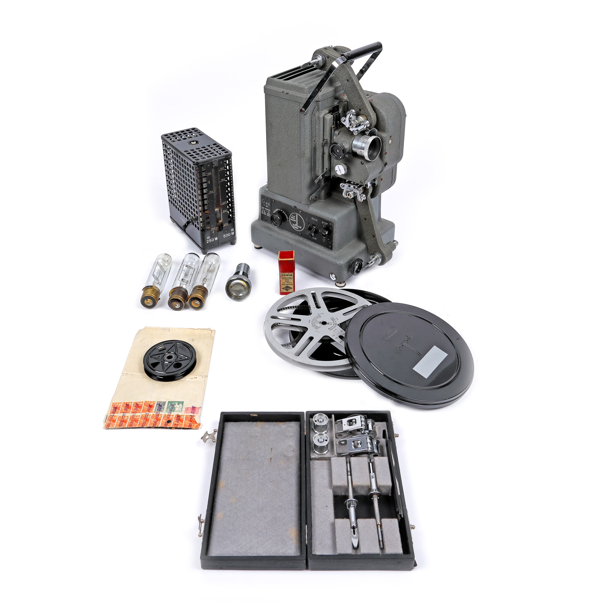 45. Aparat de proiecție Paillard G816, în cutia originală, cu factură magazinului „Orfeu” București, datată 30 aprilie 1943