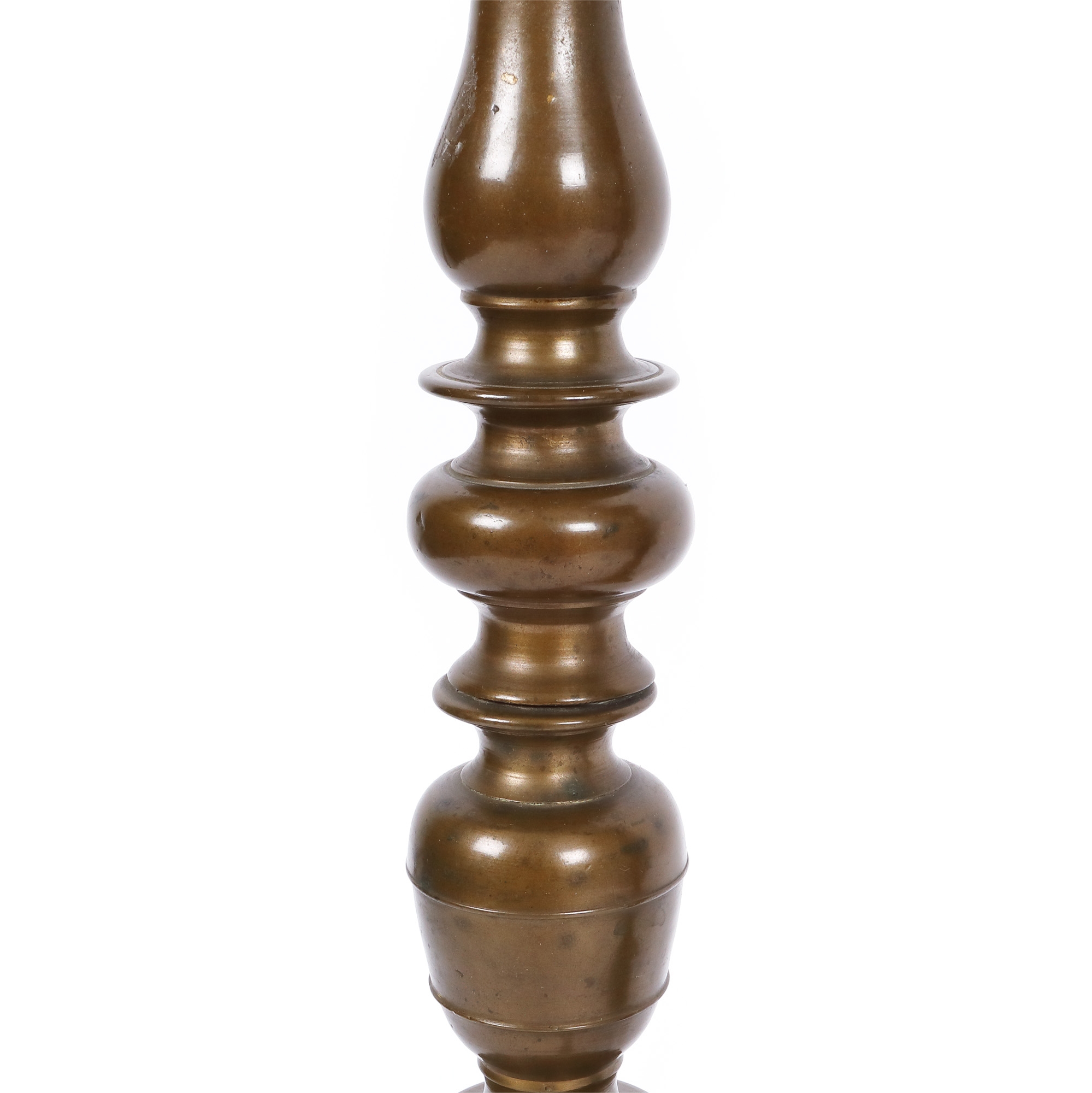 54. Pereche de sfeșnice în stil Baroc, din bronz patinat, sec. XVIII