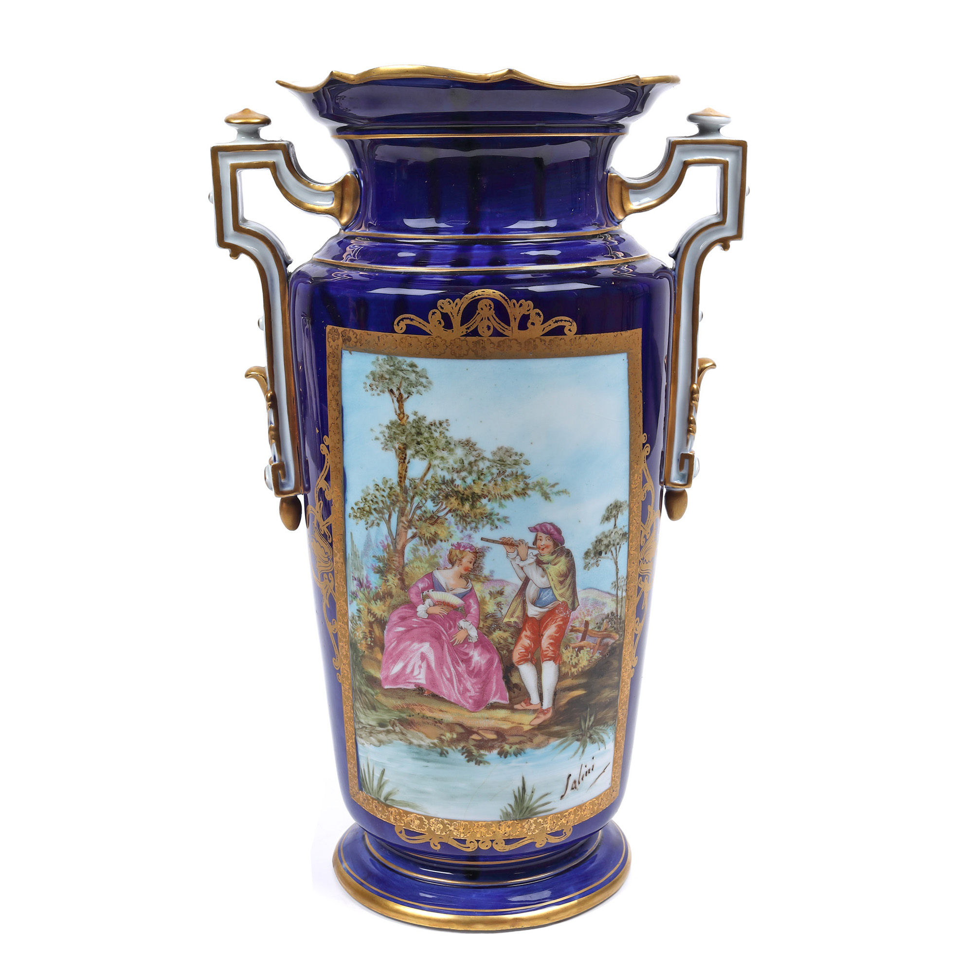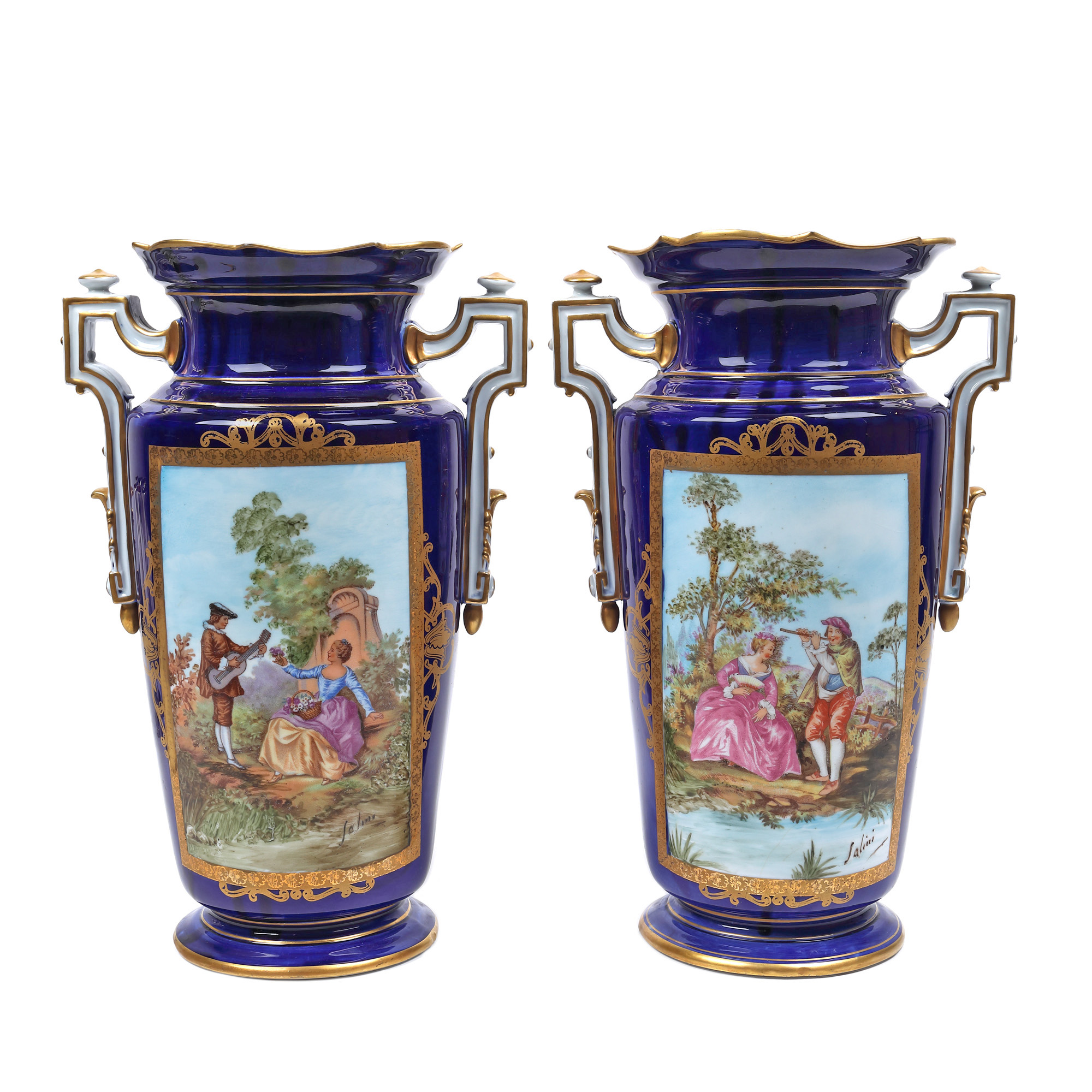 49. Pereche de vase Samson Edmé et Cie din porțelan, decorată cu scene galante, cca. 1940