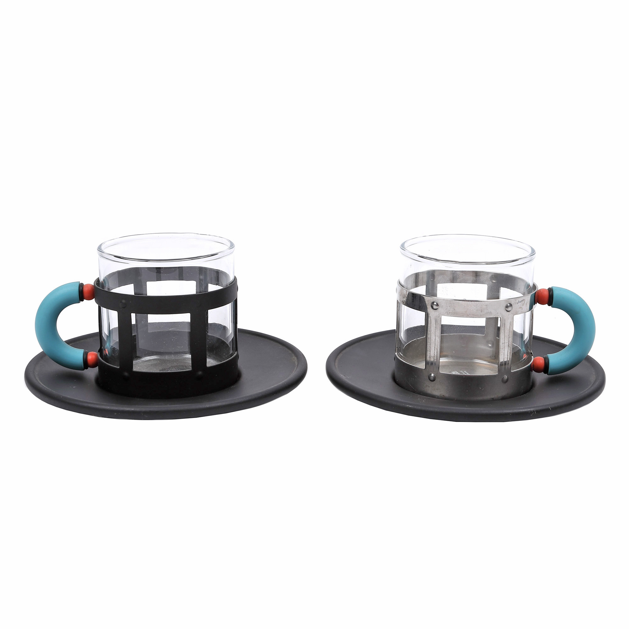 6. Set Alessi format din presă pentru cafea și două cești cu farfurie, design Michael Graves [Cca. 1989-1999]